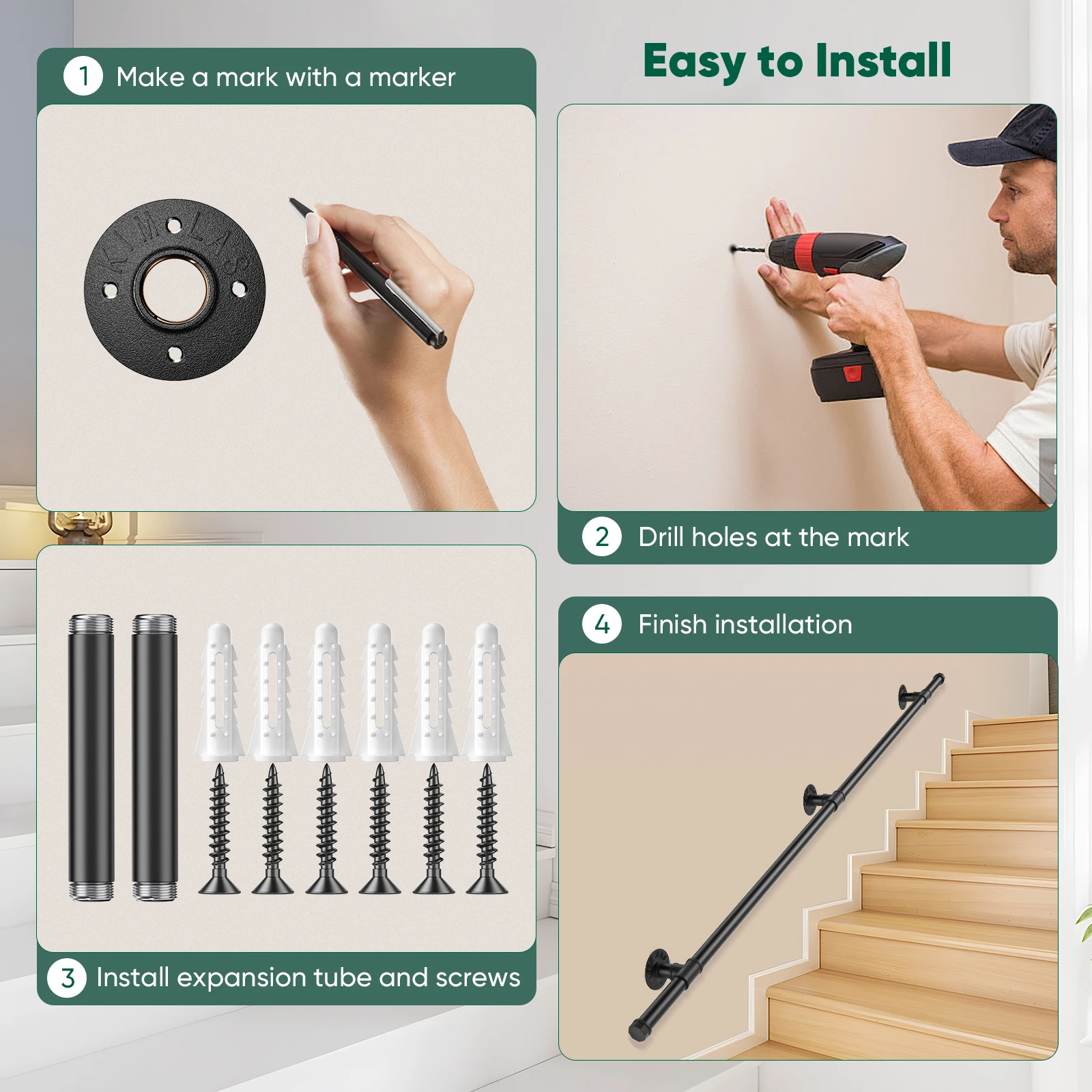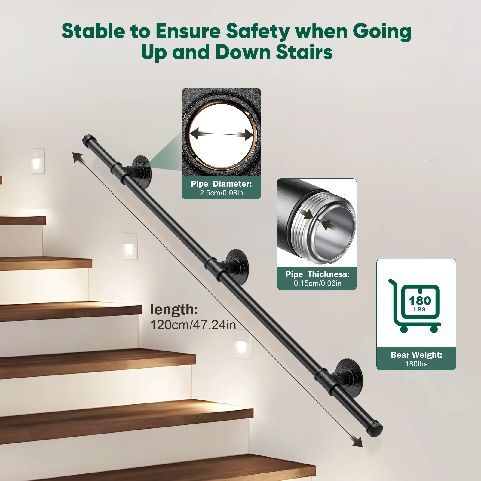 Início > Melhorias domésticas > Escadas e peças para escadas Corrimãos de parede de escada, tubos de aço industriais, trilhos de escada de metal preto, placas de ferro adequadas para decoração interna e externa Informações de envio