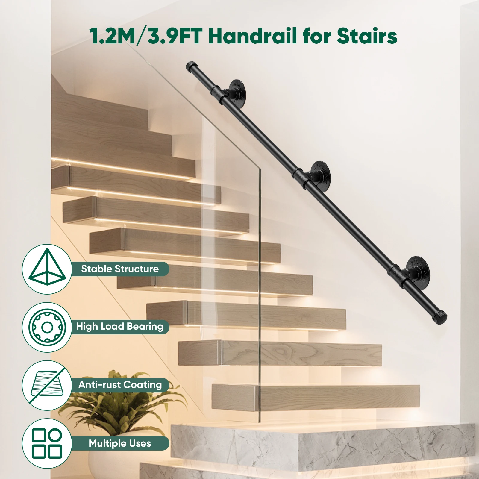 Corrimãos de parede de escada, tubos de aço industriais, trilhos de escada de metal preto, placas de ferro adequadas para decoração interna e externa - TopDealBox