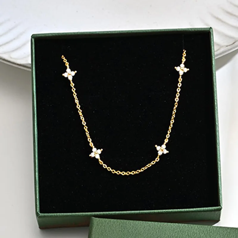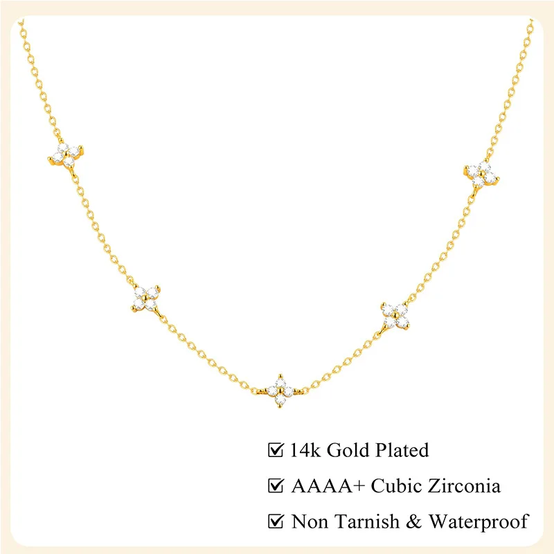 Dainty lucky leaf colar para mulher 925 prata esterlina na moda 14k chapeamento de ouro bonito branco cz flores pingente gargantilha colares - TopDealBox