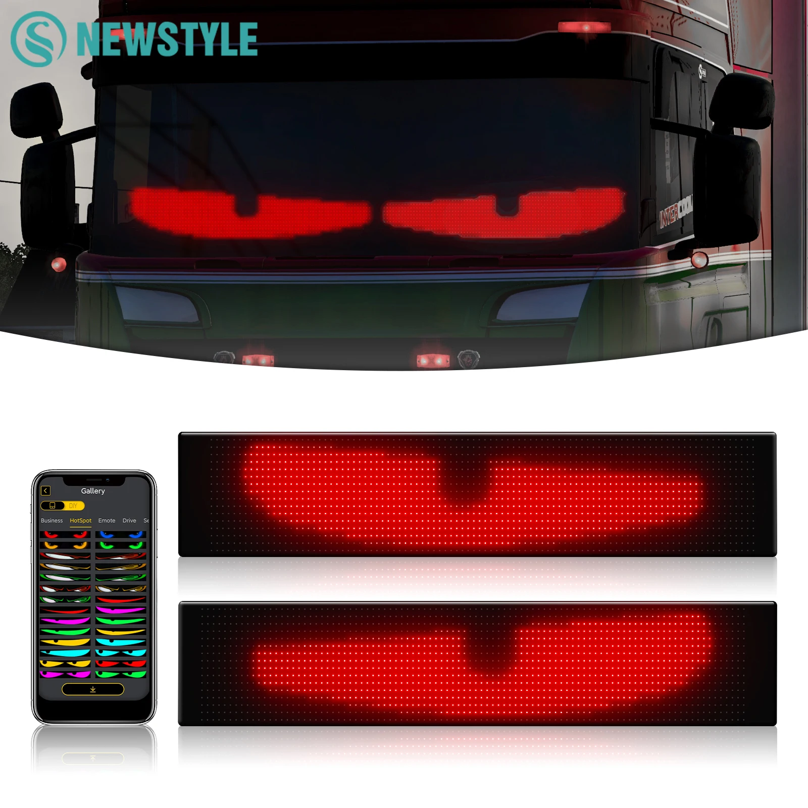 Diabo olhos flexível rolagem painel programável nightlights led sinais de carro para caminhão pára-brisa animações diy - TopDealBox