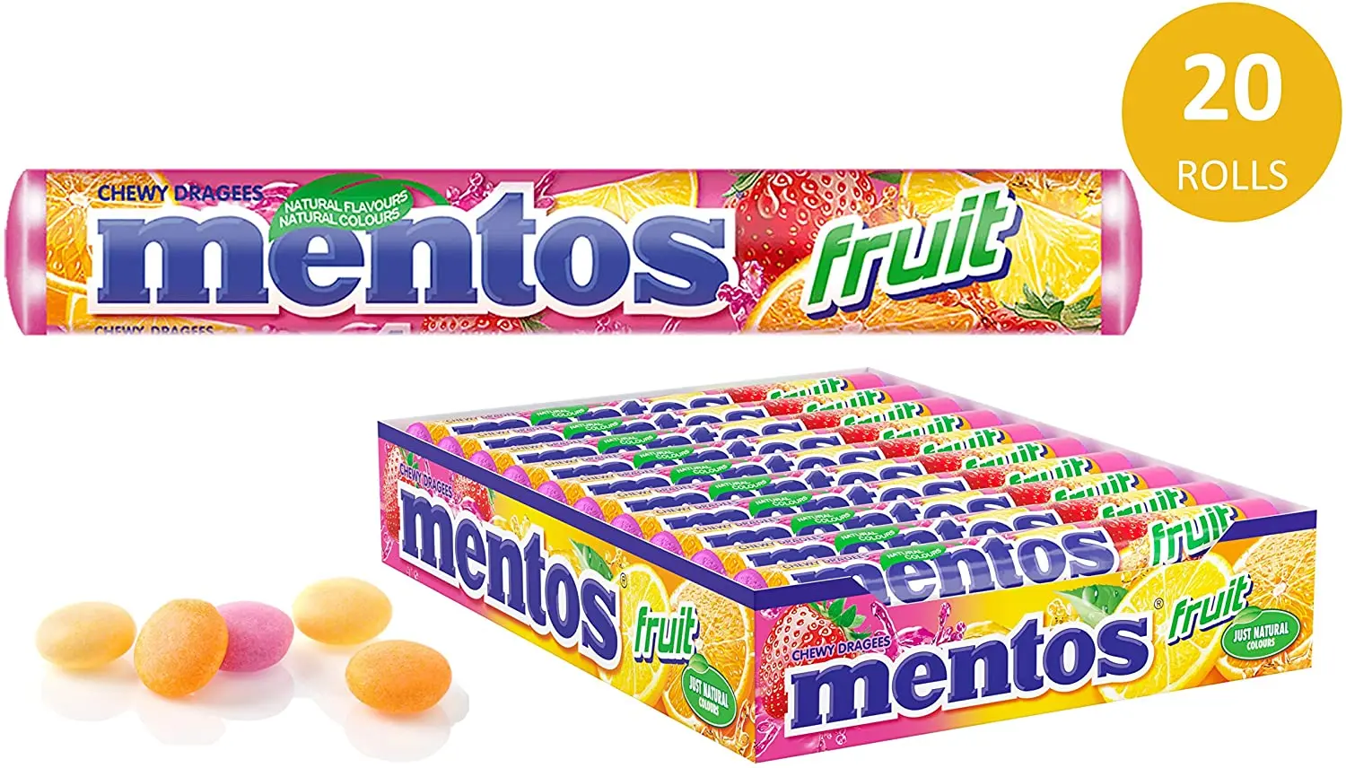 Doces-Drageias mastigáveis de diferentes sabores, hortelã, morango, frutas e frutas vermelhas, cada um tem um envoltório crocante, Soft Heart-Case com 20 rolos - TopDealBox