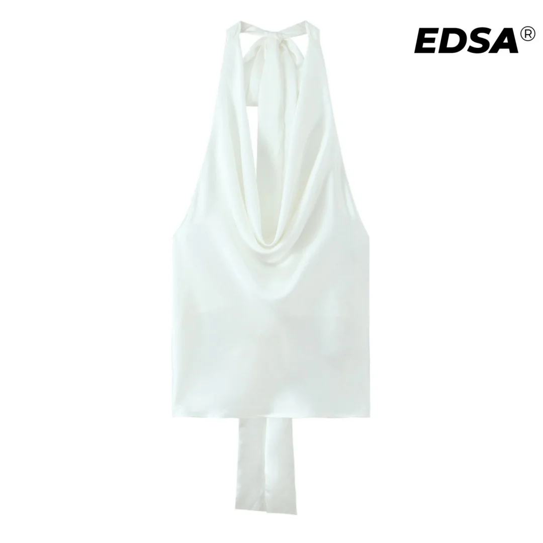 EDSA Top feminino de cetim com gravata ajustável, sem mangas, costas abertas, gola sólida, verão, estilo praia, blusa casual - TopDealBox
