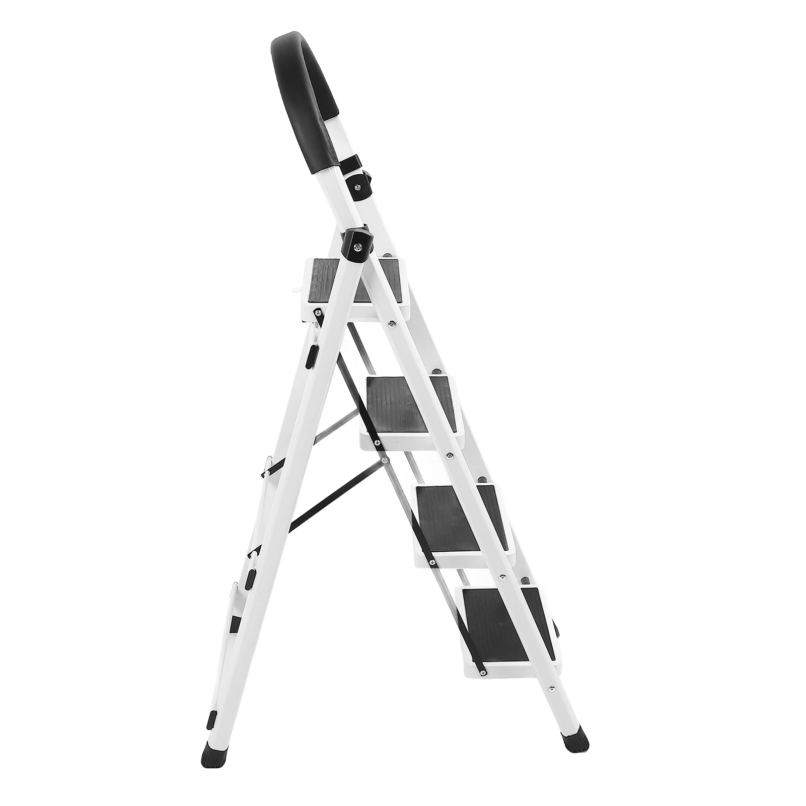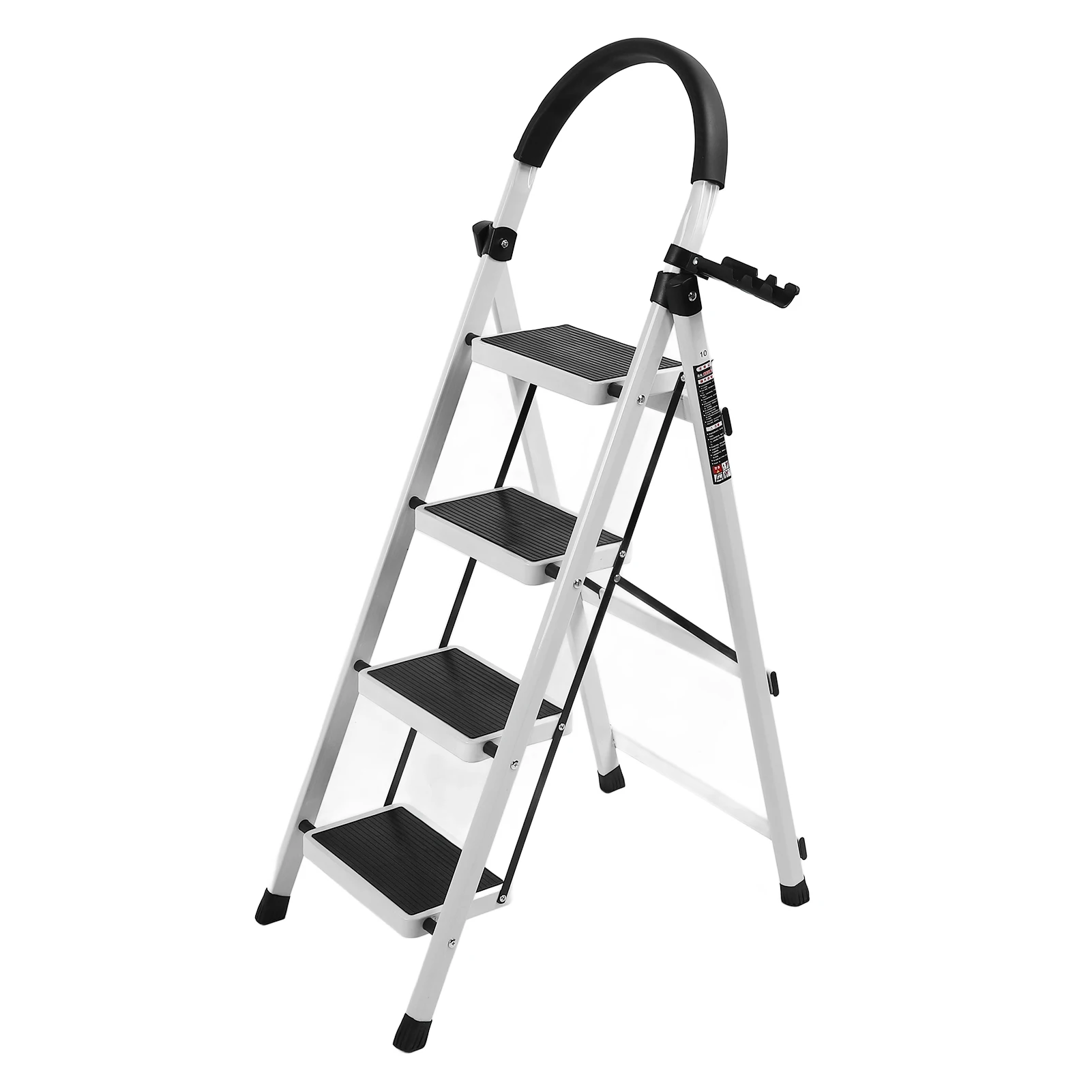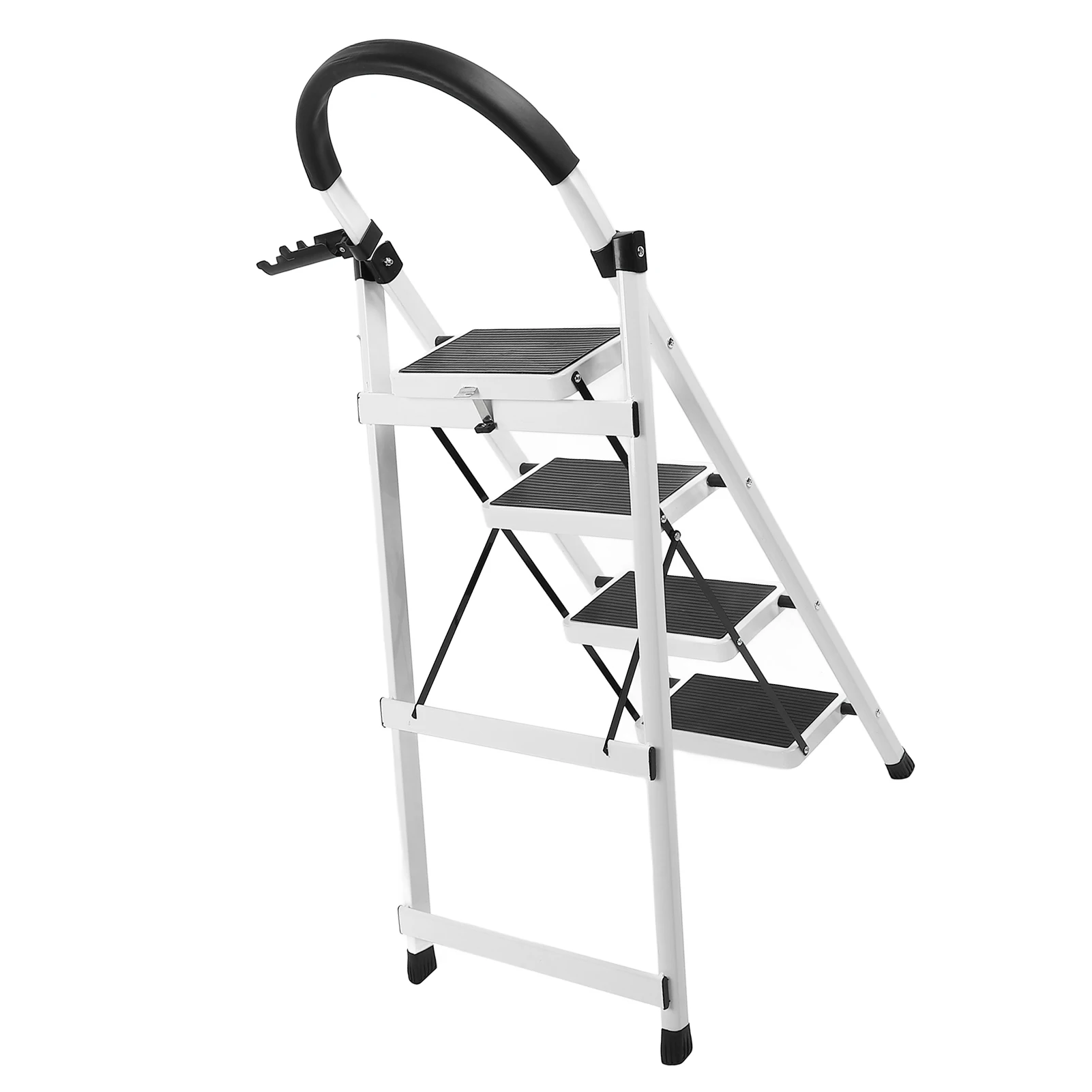 Escada dobrável de 4 degraus com corrimãos de aço grosso dobrável banco de 4 degraus portátil escada de aço resistente para interior branco - TopDealBox