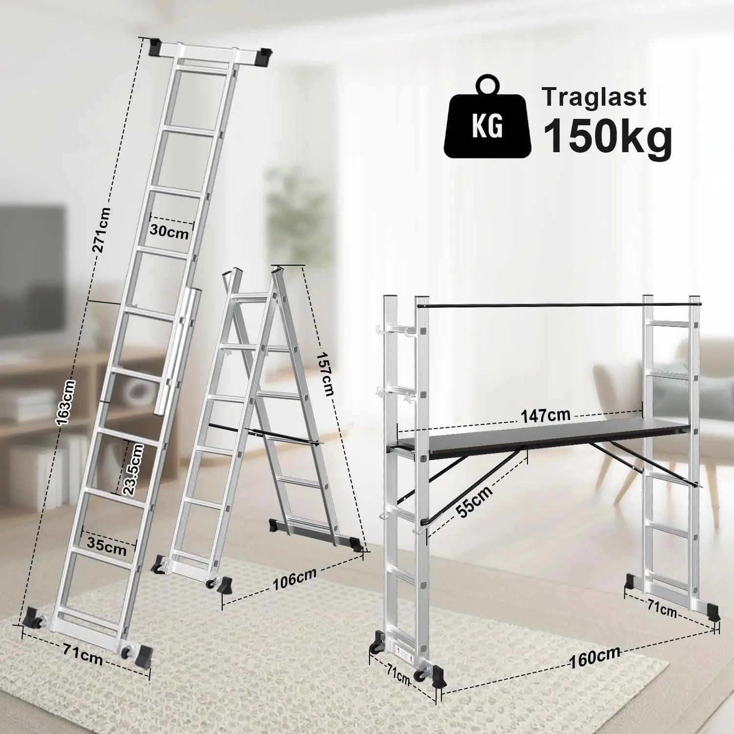 ♡Visualização rápidaEscada telescópica de alumínio portátil, 5m, 2.5 + 2.5, com rodas removíveis, estabilizadores, antiderrapante, multiusos, carga máxima 150kg79.42 EUREUR 374.05Quente