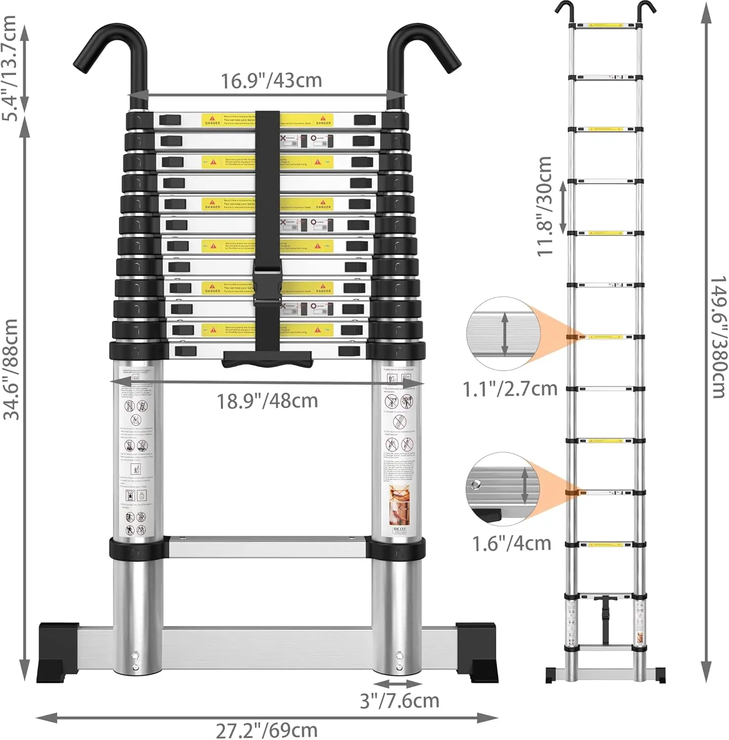 ♡Visualização rápidaEscada telescópica de alumínio da escada do passo de 20.3ft/6.2m + ganchos destacáveis do telhado, preto, capacidade de carga de 330 libras, altura ajustável de 15 passos134.89 EUREUR 2172.16Quente★★★★★5.0