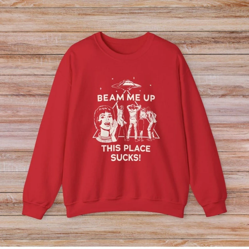 Feixe-me até este lugar é uma merda estranho moletom de manga longa alienígena ufo abdução citação retrô outono e inverno combinando moletons - TopDealBox