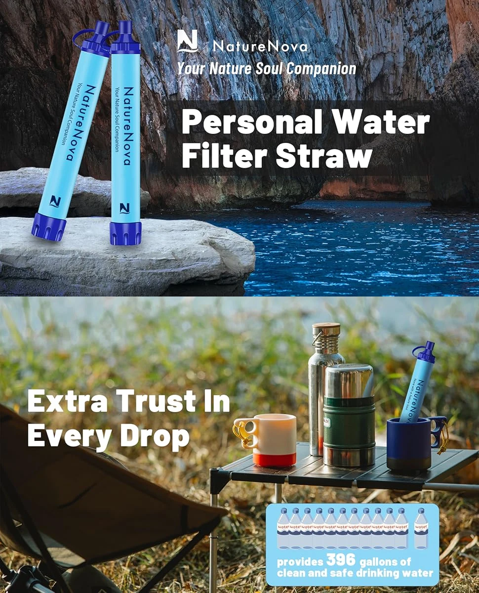 Filtro de Água Pessoal em Canudo, Filtração Portátil para Emergências, Equipamento de Sobrevivência, Soluções de Água, Equipamento Tático para Caminhadas e Camping - TopDealBox
