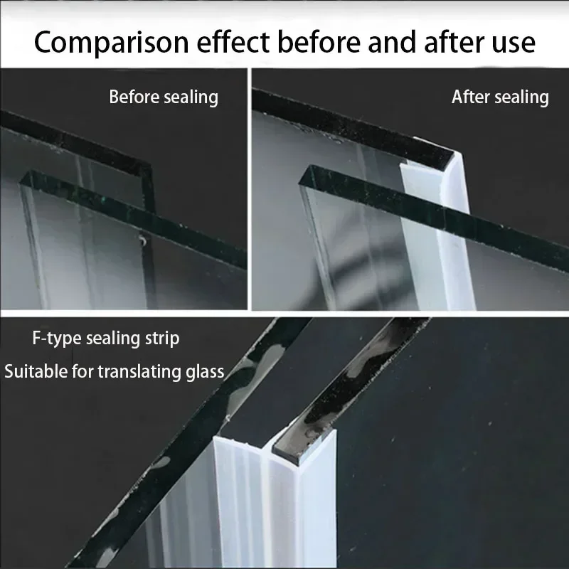 Fita de vedação de borracha de silicone em formato F/H de 2 metros de largura para porta de box de banho sem moldura, para vidro de 6/8/10/12mm. - TopDealBox