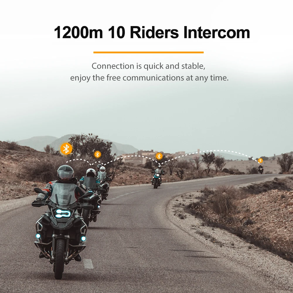 Freedconn fg motocicleta interfone capacete fone de ouvido bluetooth 1000m interfone comunicador 10 pilotos à prova dwaterproof água rádio fm música - TopDealBox