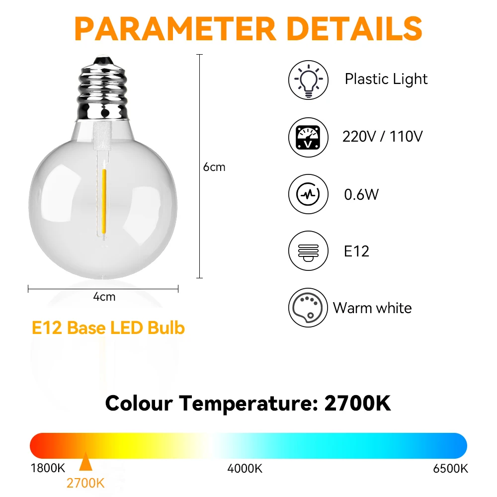 G40 led luzes da corda ao ar livre 15m luzes de bola inquebrável led festão luz para pátio quintal varanda jardim iluminação decorativa - TopDealBox