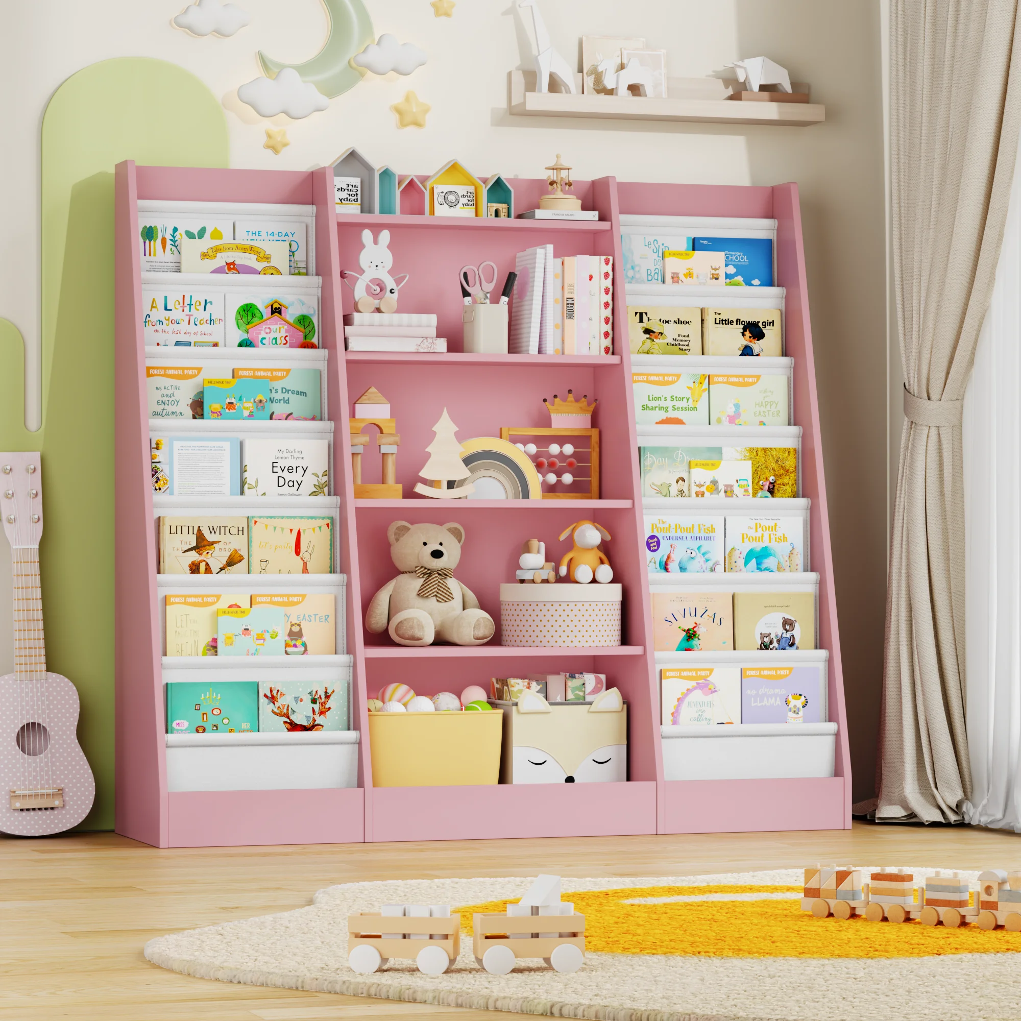 ♡Visualização rápidaGetone Unidade de armazenamento de brinquedos Estante infantil Móveis para quarto infantil Estante com 4 boxe 2 rolos de boxe 13 prateleiras 126x30x104cm155.77 EUREUR 1470.76Quente★★★★★5.0