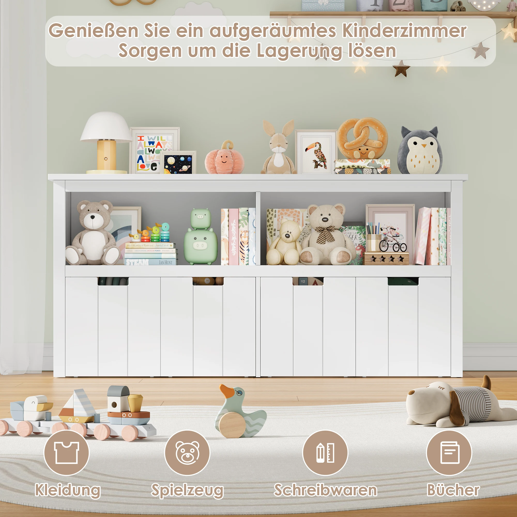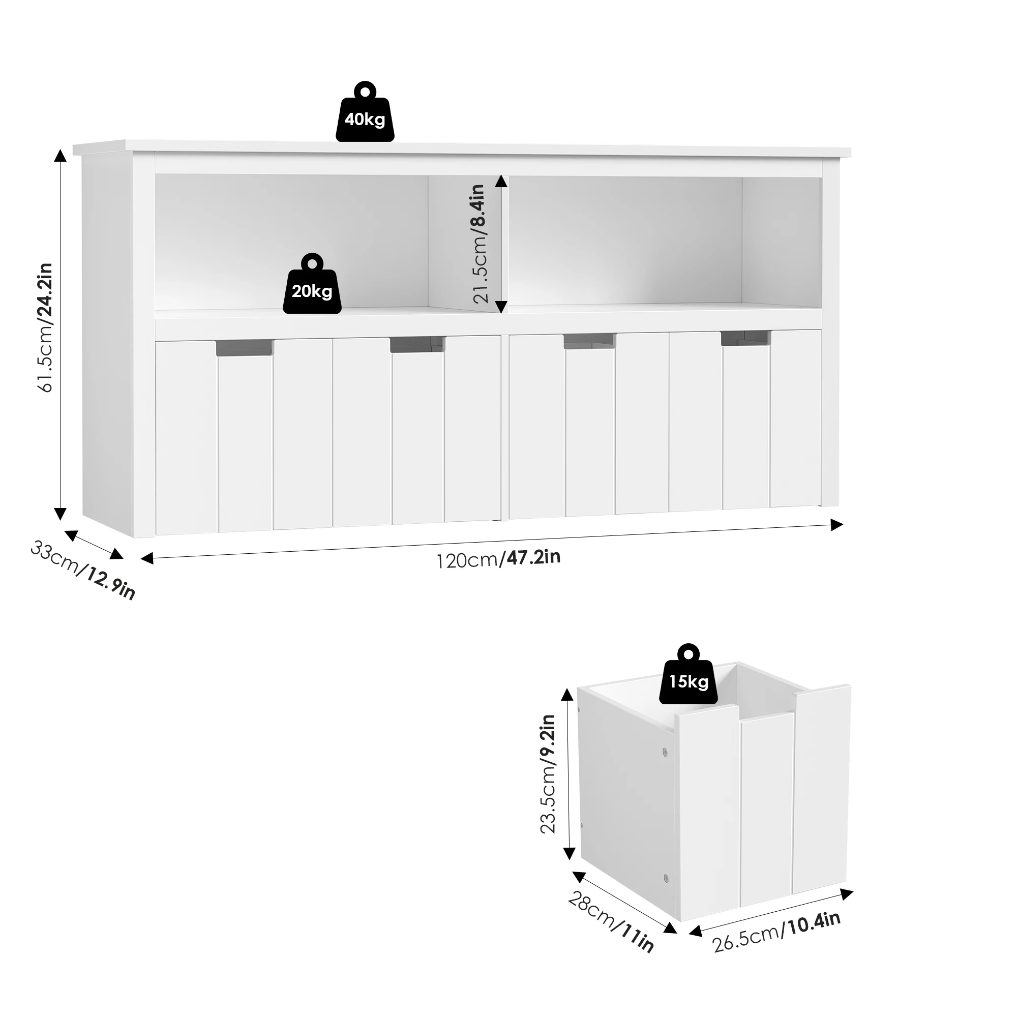 Getone Unidade de armazenamento de brinquedos Armário infantil com 4 boxe em rolos Móveis para quarto infantil Armário de armazenamento de brinquedos 120x33x61,5 cm Branco - TopDealBox