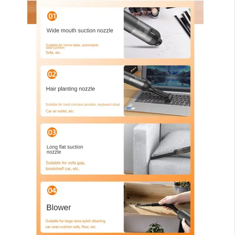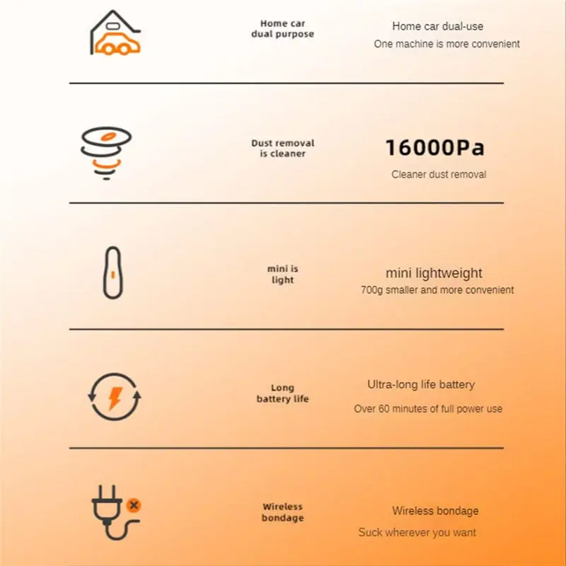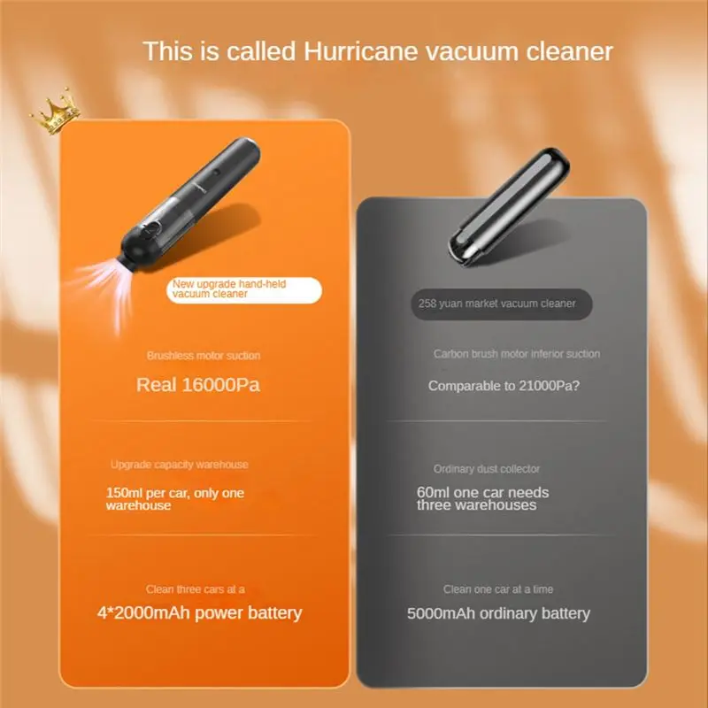 *Grande 16000Pa Aspirador de pó para carro Bomba de ar Aspirador de pó sem fio para limpeza automática doméstica Mini aspirador portátil-A - TopDealBox