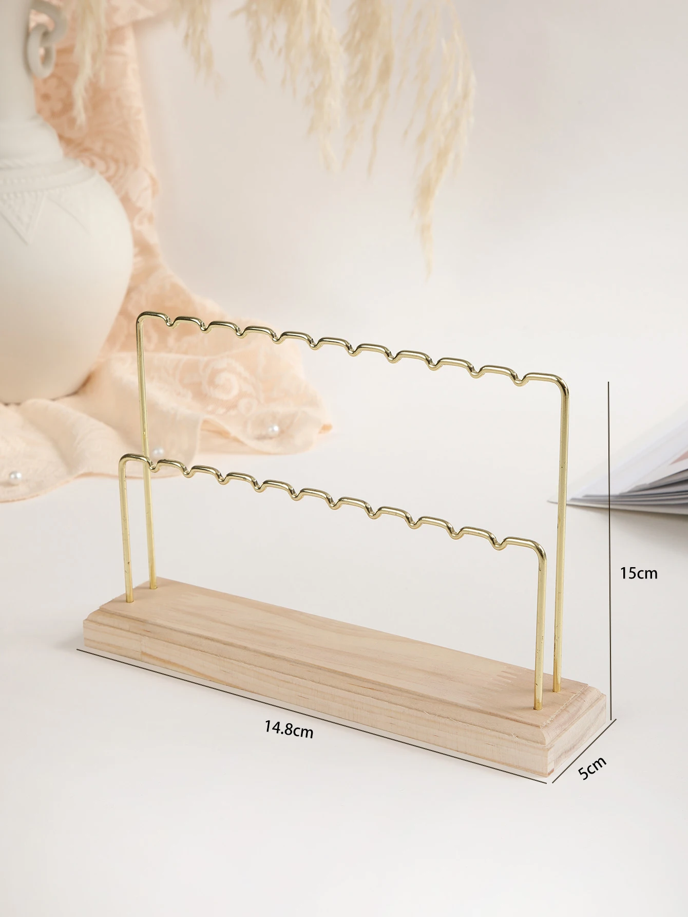 Madeira/metal ouro duplo-deck brincos anel colar relógio prateleira de jóias suporte contador pingente jóias expositor - TopDealBox