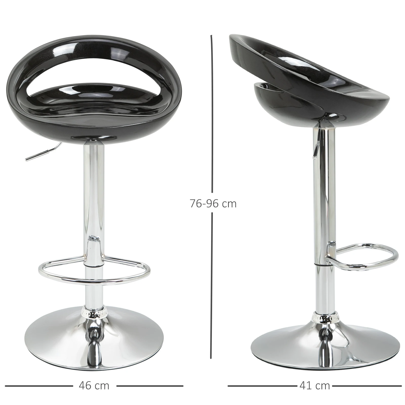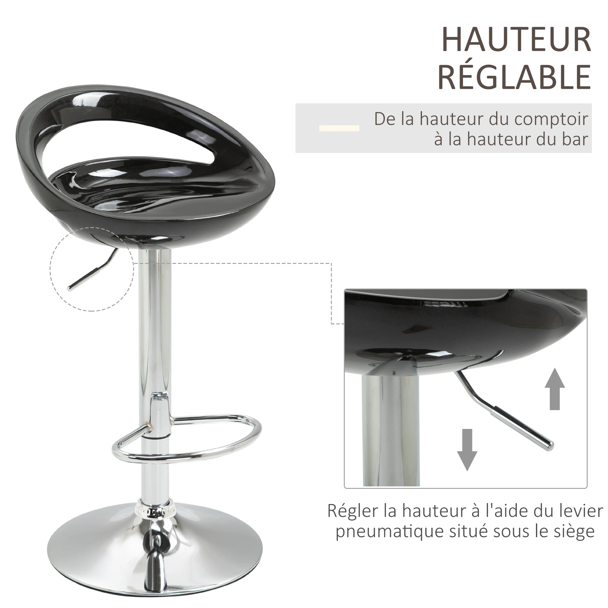 HOMCOM 2 Cadeiras de Bar, Cadeiras de Bar com Altura Ajustável, Cadeira Alta de Cozinha com Apoio para Dedos, Pés e Calcanhares - TopDealBox