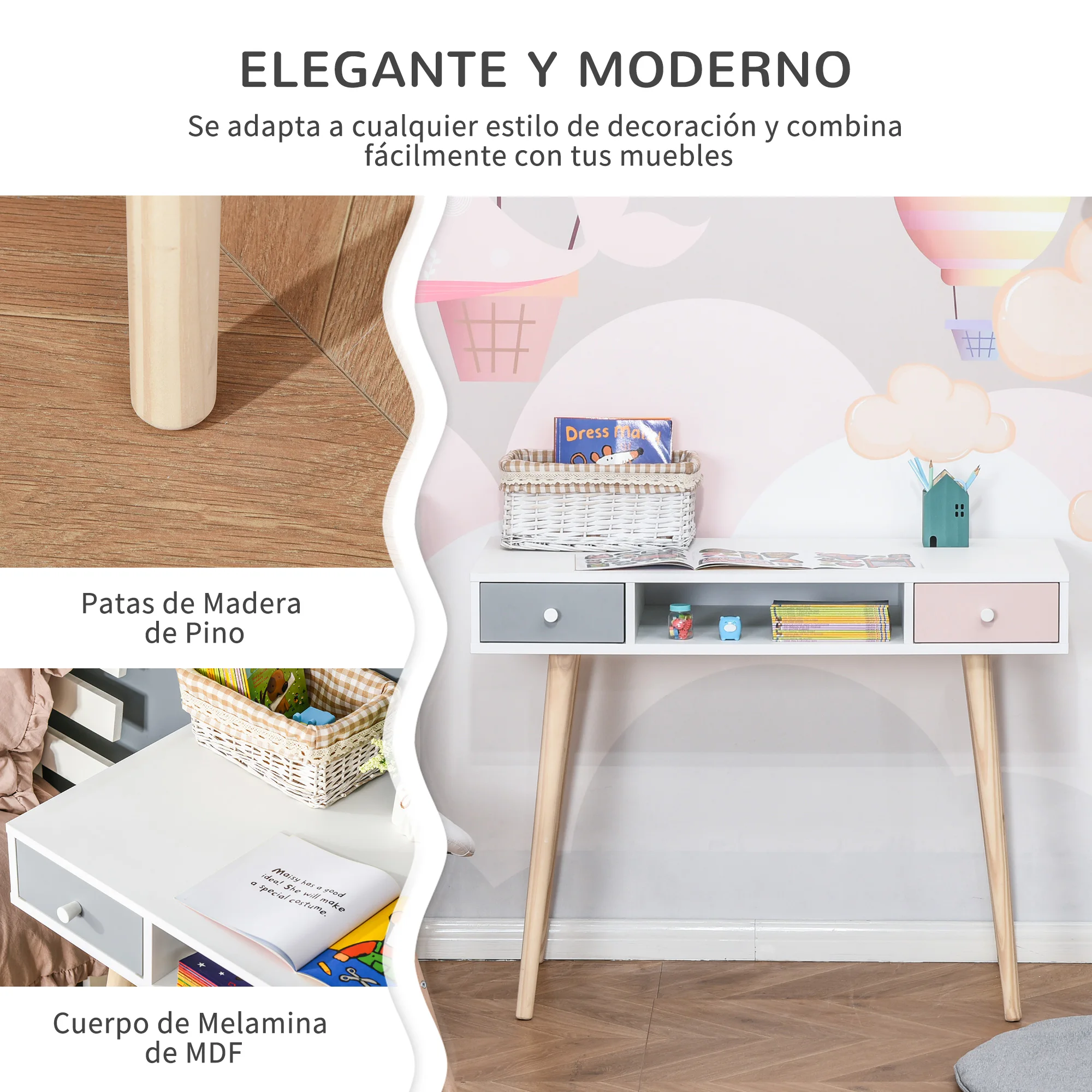 HOMCOM Secretária para Crianças, 1 Compartimento Aberto, 2 Gavetas, 100x48x76,5cm - TopDealBox