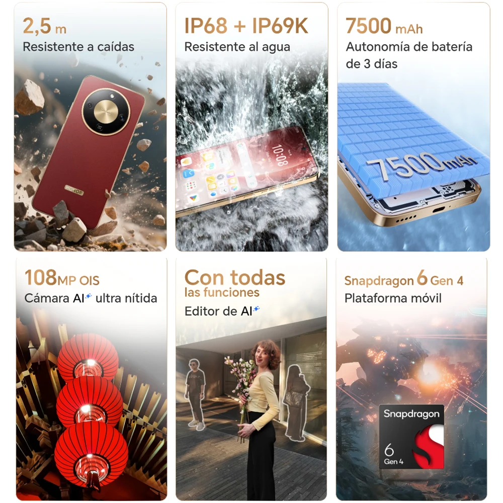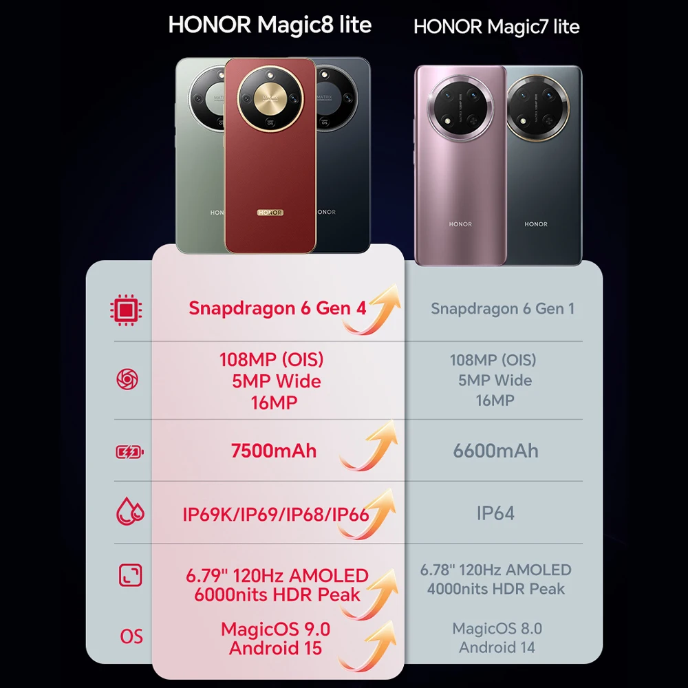 HONOR Magic8 lite Bateria de 7500 mAh Câmera Principal de 108MP Tela AMOLED de 6,79 polegadas 120Hz IP69K Versão UE - TopDealBox