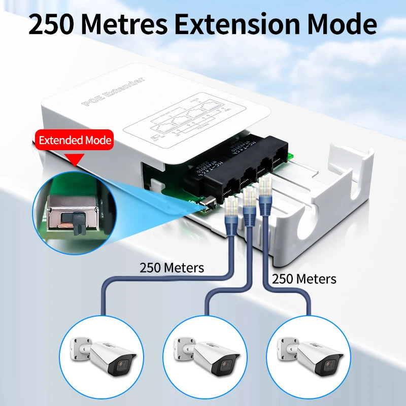 HORACO Extensor POE de 4 portas 100M Repetidor POE à prova de chuva ao ar livre IP30 VLAN 44-57V 30W para câmera POE AP sem fio - TopDealBox