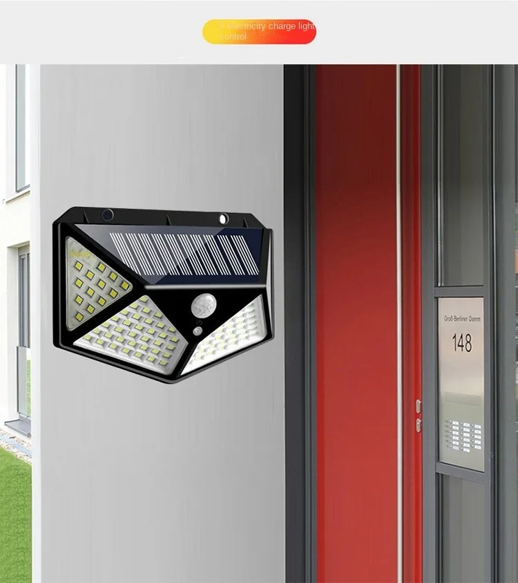 Solar Powered Outdoor Pátio Iluminação de parede, 100LED Street Light, impermeável e Energy-Saving, Human Sensing, Household Jardim - TopDealBox