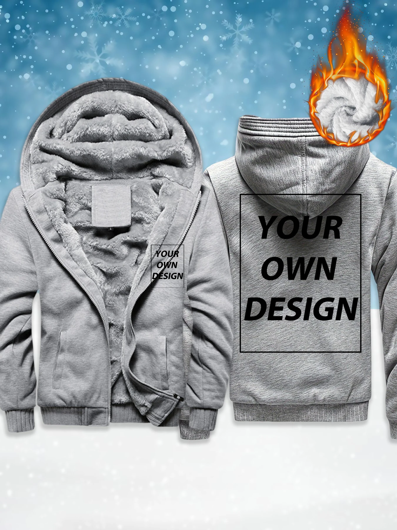 Jaquetas de Inverno M-5XL em Fleece Espesso com Impressão Personalizada de Logo, Quentes, Oversize, com Zíper, Roupas Confortáveis e Básicas para o Dia a Dia