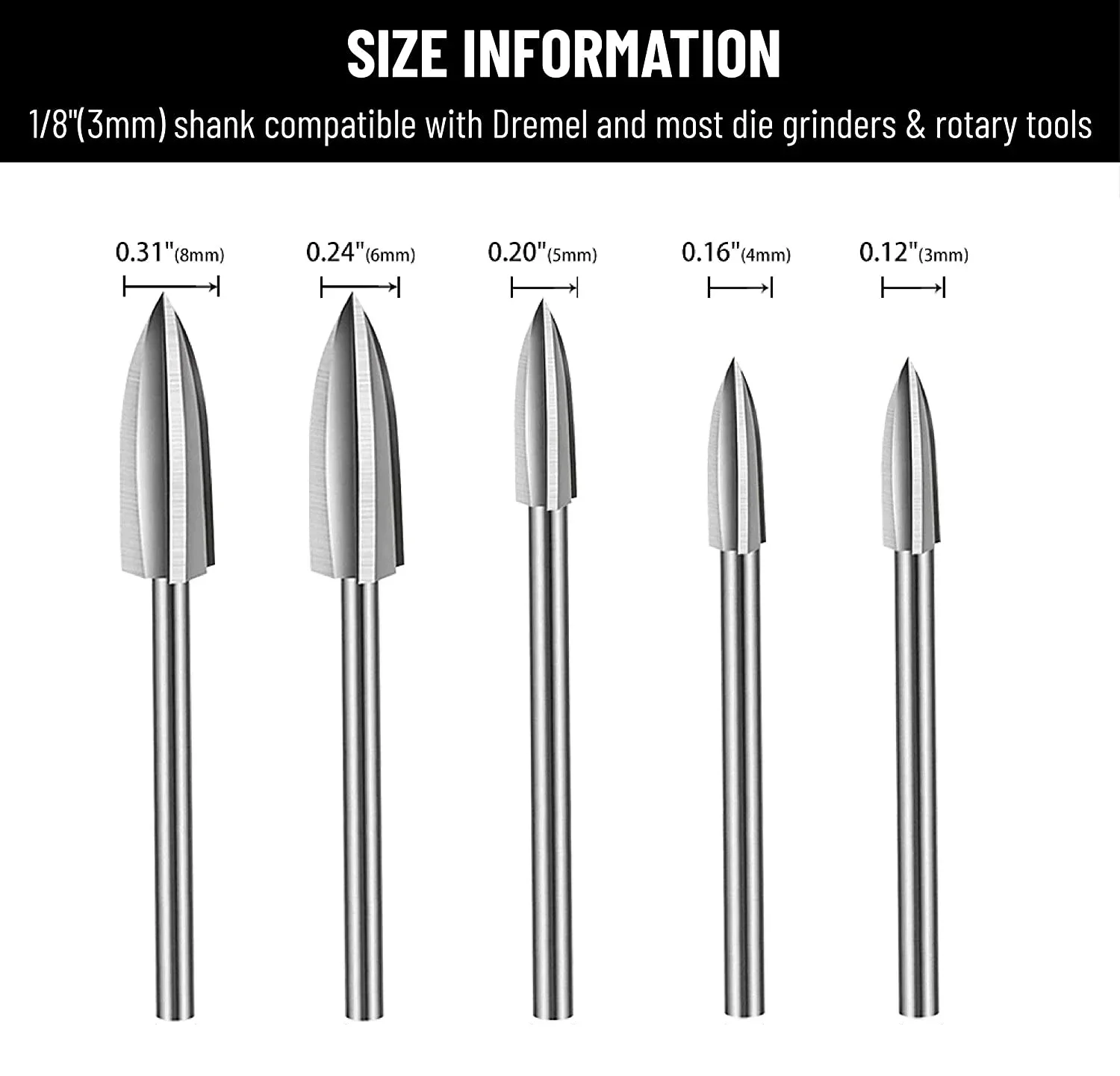 Conjunto de brocas para escultura em madeira, ferramenta rotativa dremel com haste de 1/8 "para escultura diy, perfuração, micro escultura - TopDealBox