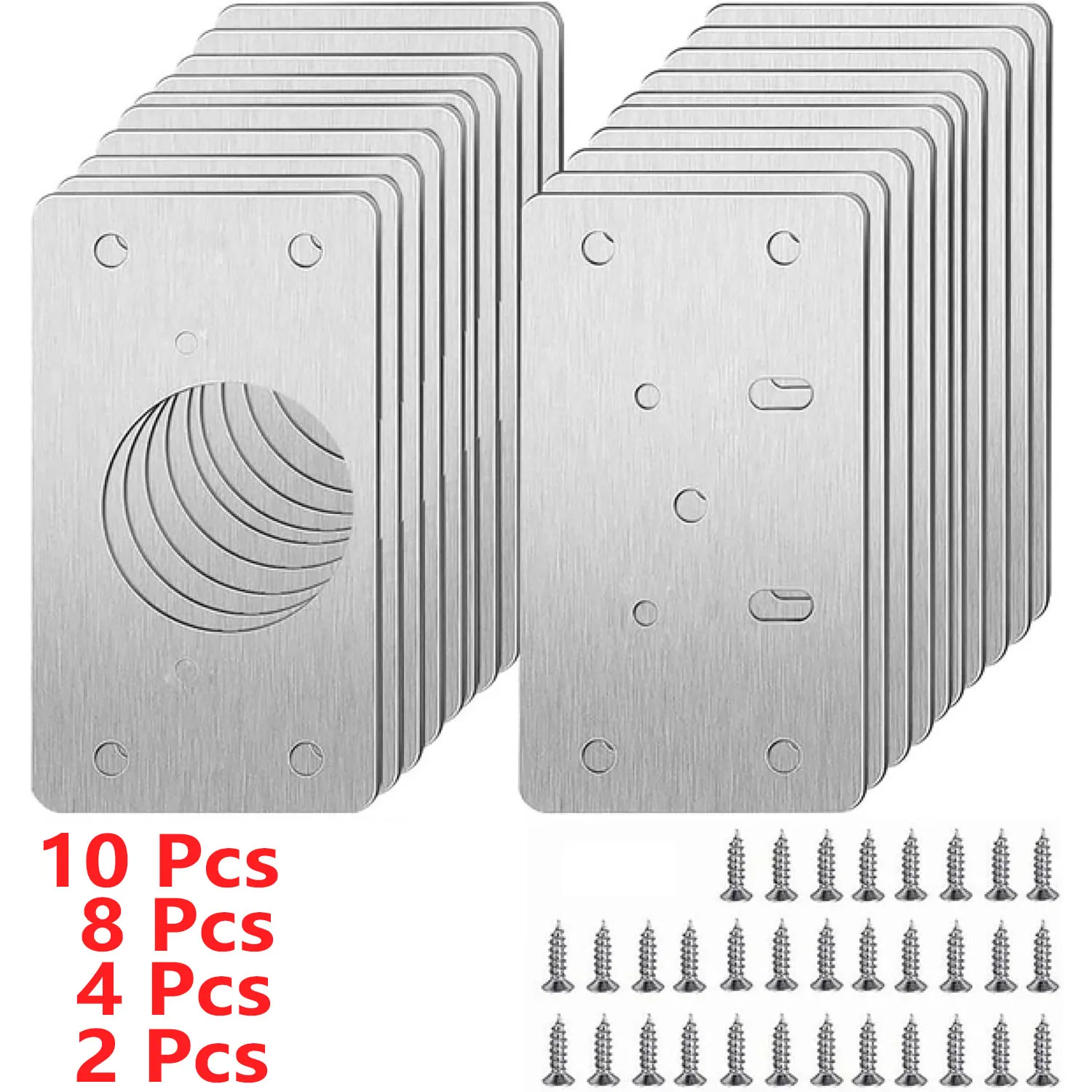 Kit de placa de reparo de dobradiça de armário, 10/8/4/2 peças, para armários e móveis de cozinha doméstica, placa de montagem de dobradiça de porta de aço inoxidável com furos - TopDealBox