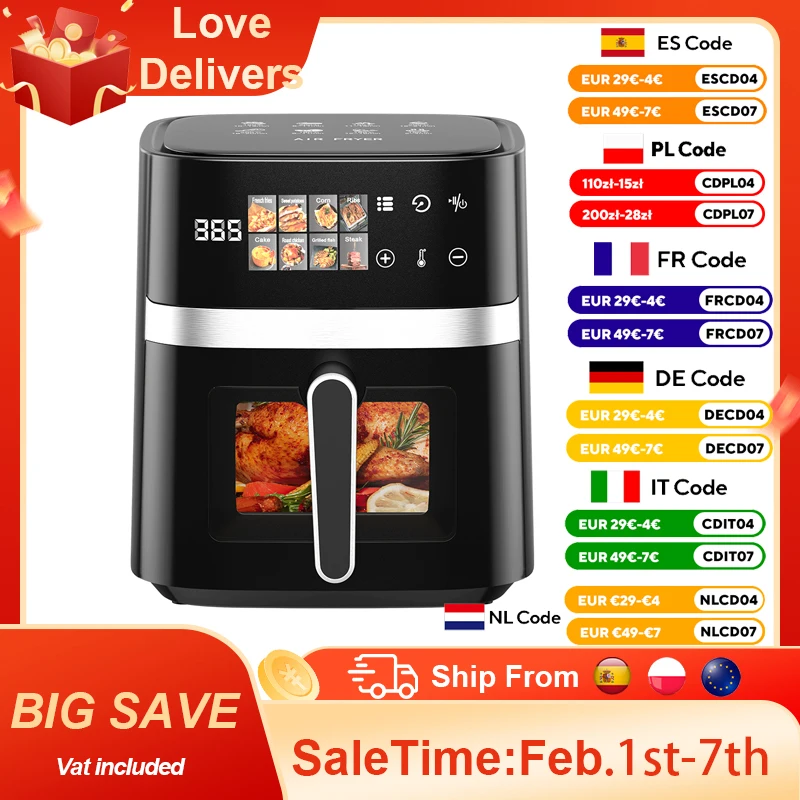 ♡Visualização rápidaFritadeira de ar Patbrela 5,5L Forno quente elétrico 8 em 1 com tela LED digital Janela visível Max 200 ° C 1350W Nova Fritadeira Preta Não Gordura45.62 EUREUR 167.98Quente★★★★★★4.8