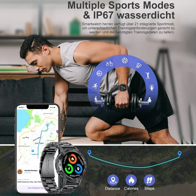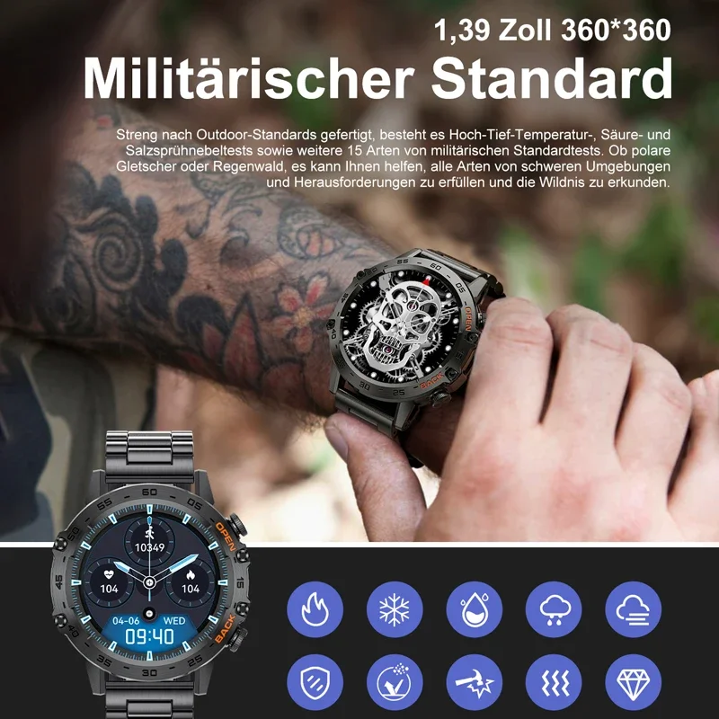 LIGE-Relógio Inteligente Militar para Homens, Chamada HD Bluetooth, IP68 Relógio Impermeável, Tela AMOLED, Bateria 400mA, Apto Para Esportes Ao Ar Livre - TopDealBox