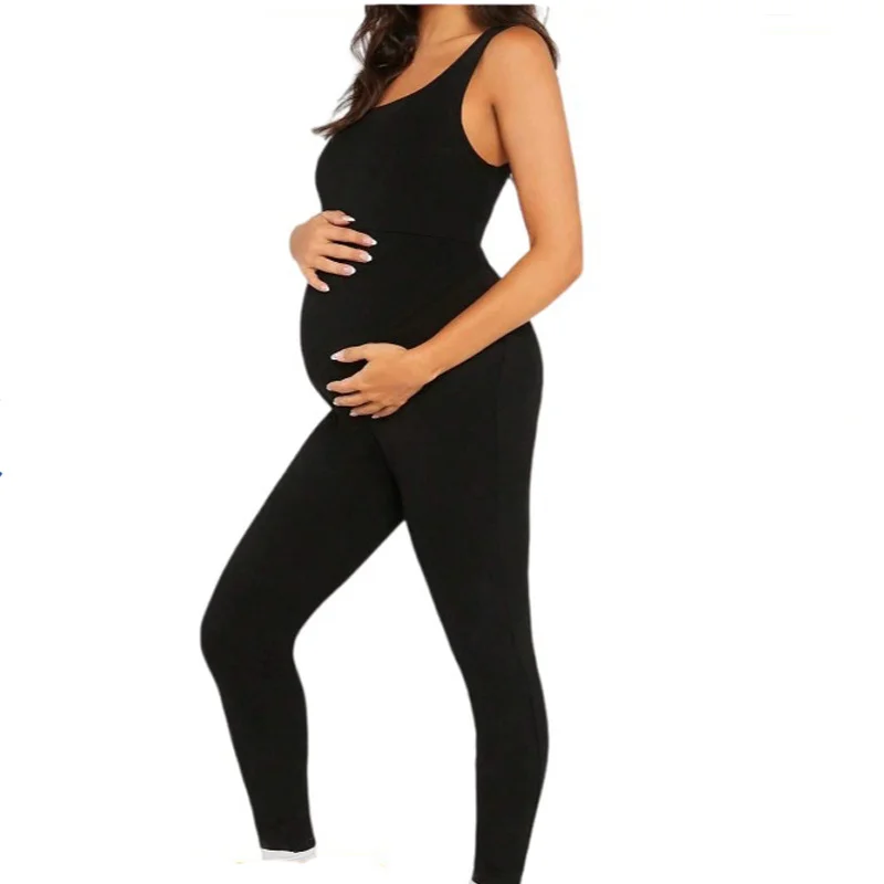 Macacão de maternidade preto, justo e levantamento de quadril, elástico, casual, para mulheres grávidas, estilo verão, pano para maternidade - TopDealBox