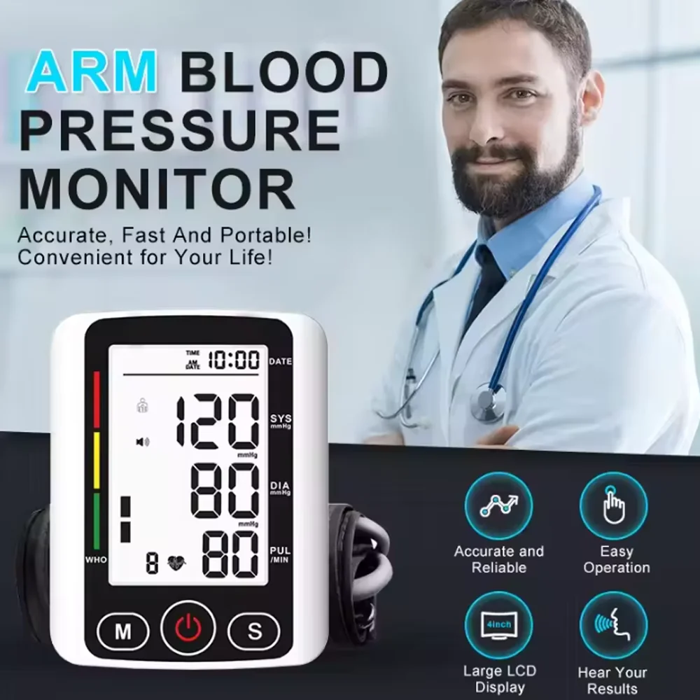 Medidor de pressão arterial do braço superior tonômetro automático bp manguito máquina esfigmomanômetro médico casa tensiômetro digital bp monitor - TopDealBox