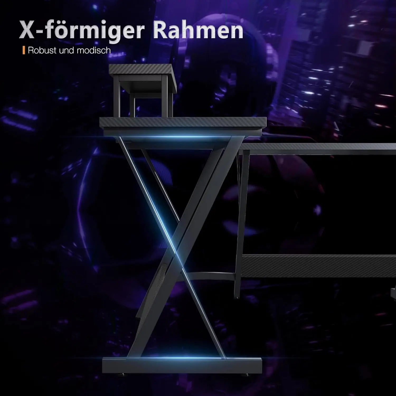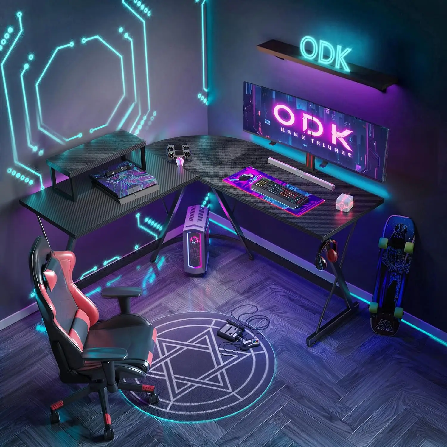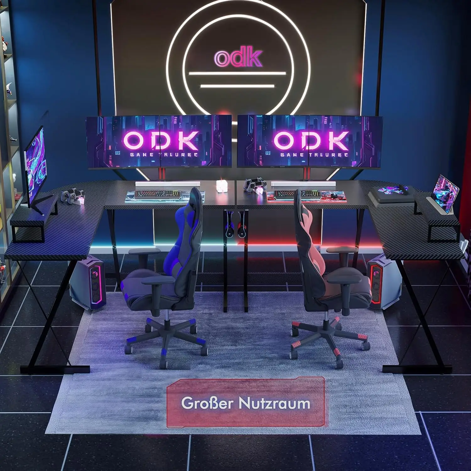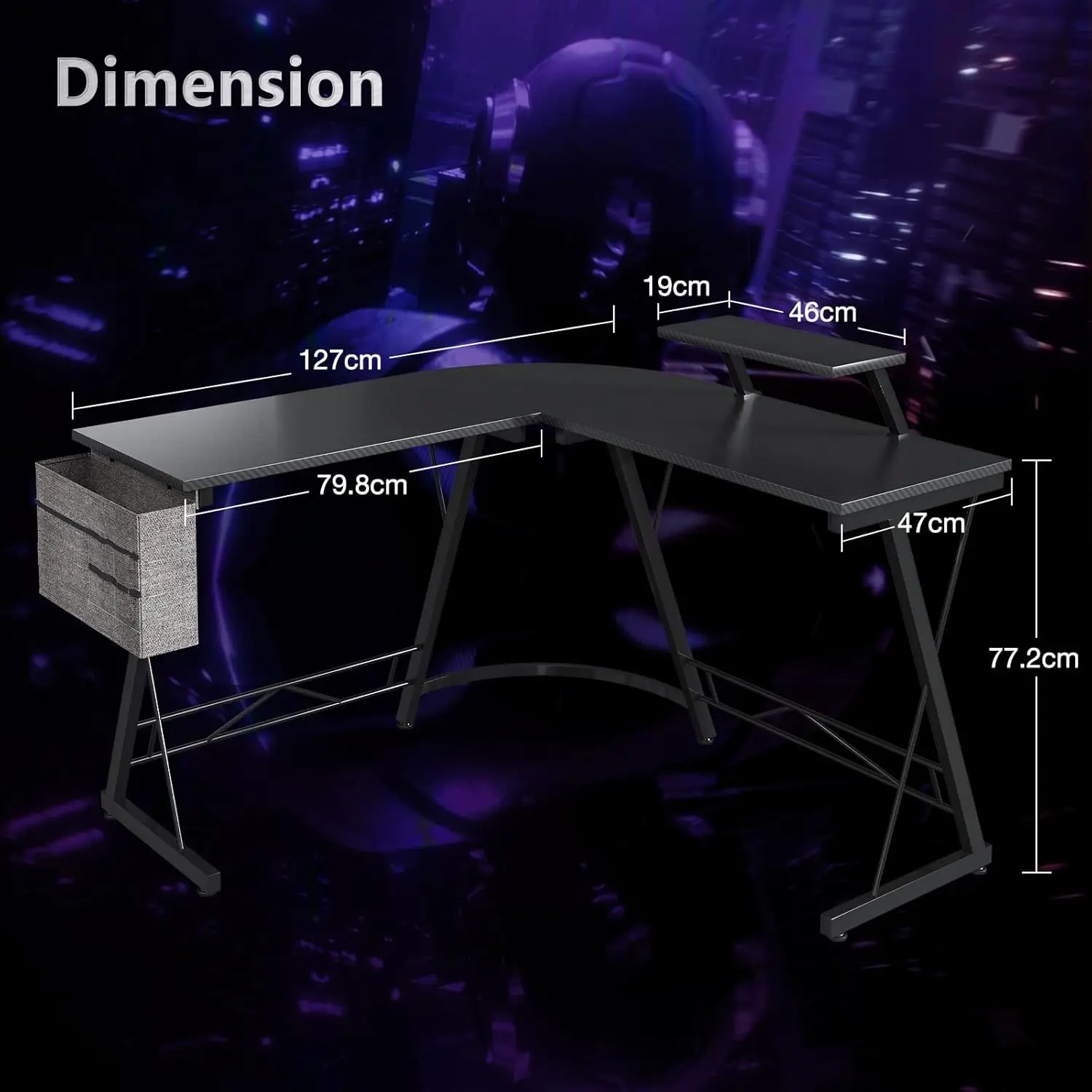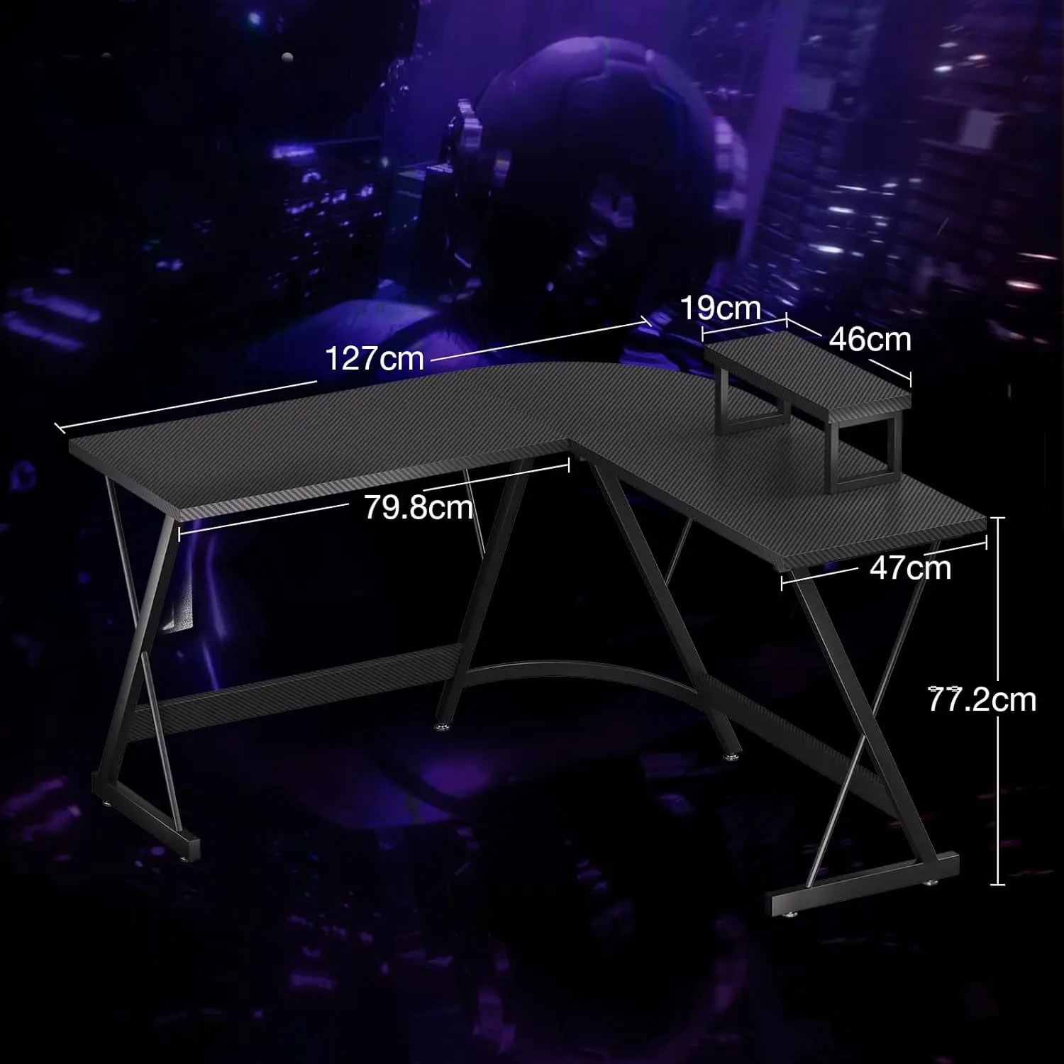 Mesa de jogos Coleshome, 127x127 cm Mesa de jogos de canto para jogadores, mesa L Carbon Black - TopDealBox