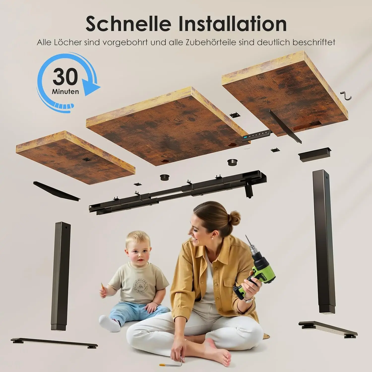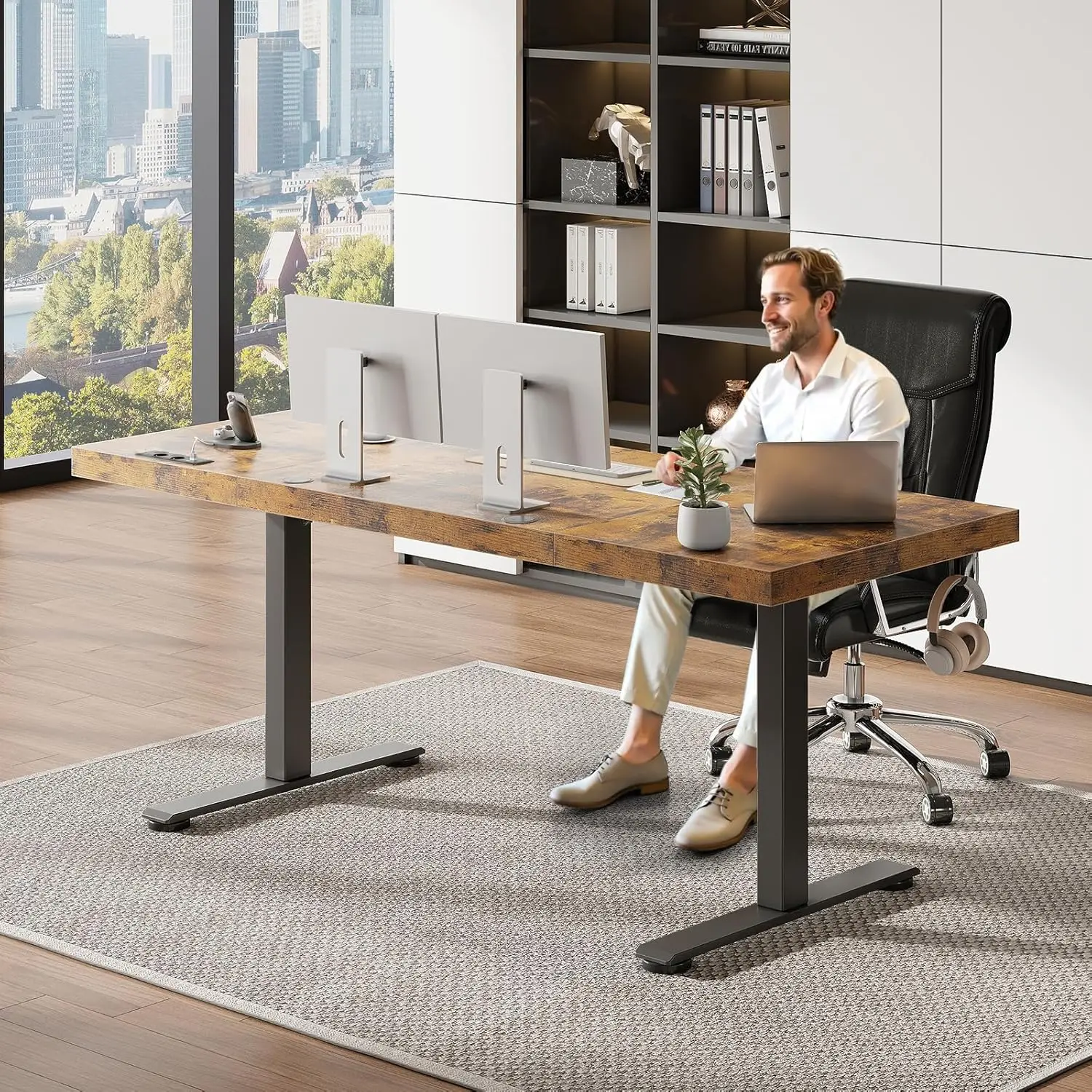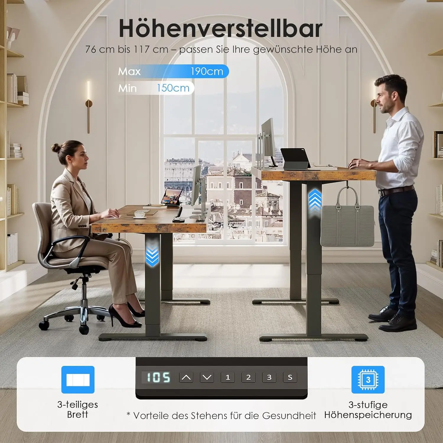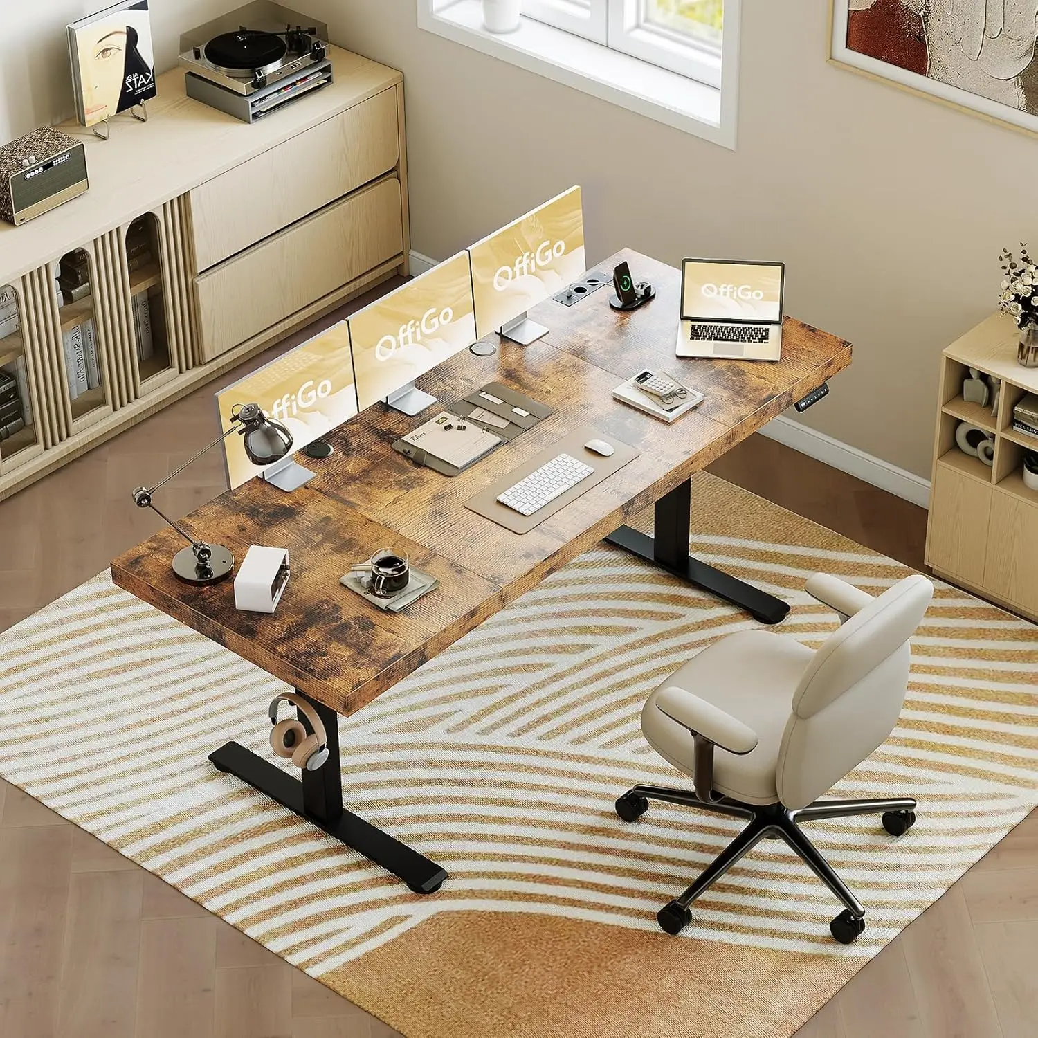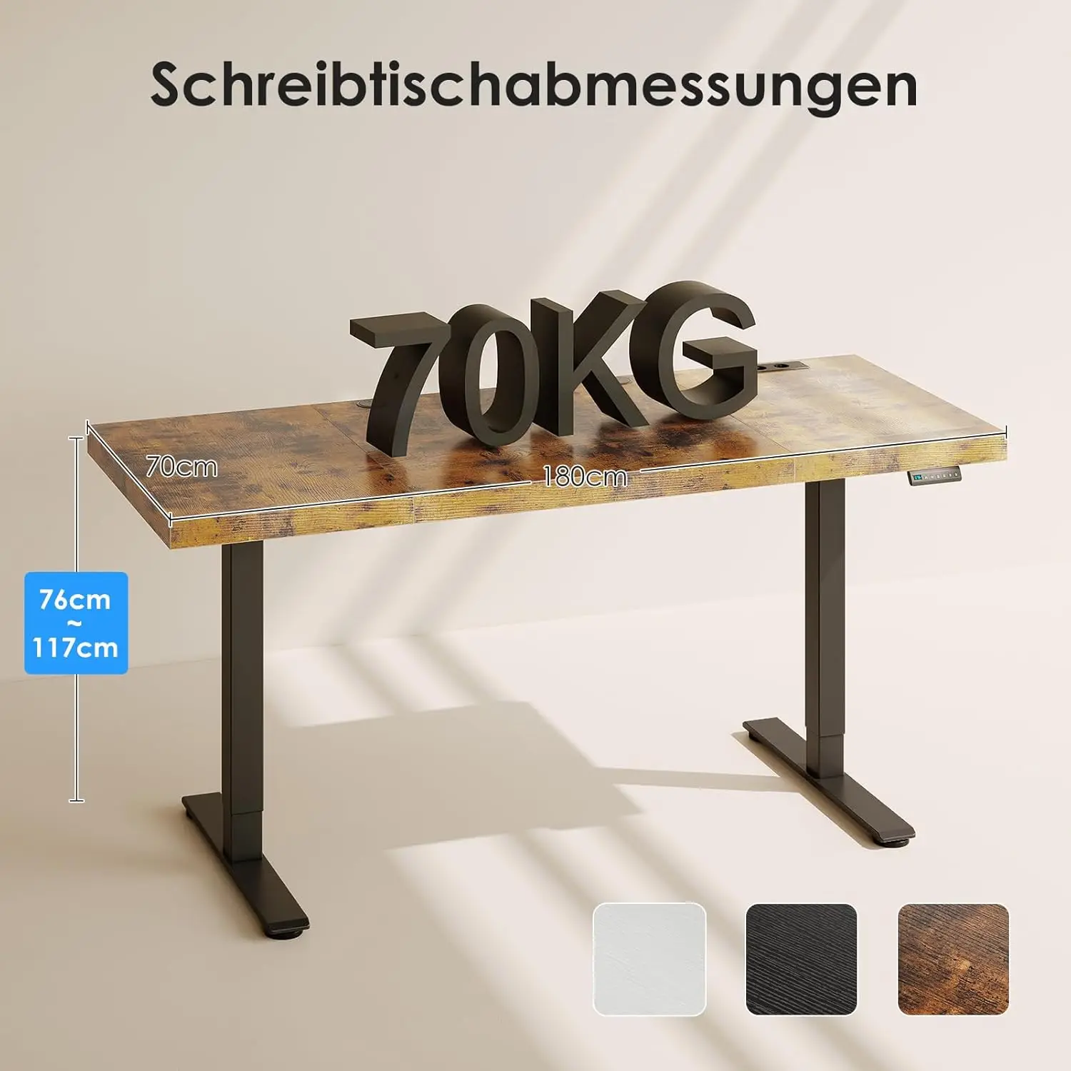 Mesa Elétrica OffiGo com Altura Ajustável 180x70 cm, Tampo de 35MM com Tomada, Marrom - TopDealBox