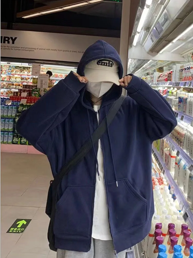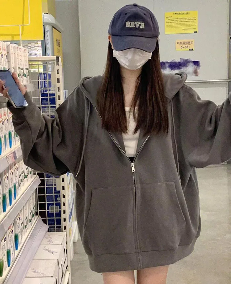 Moda coreana com capuz com zíper moletom feminino outono manga longa topos casual y2k hoodies streetwear harajuku jaquetas soltas casacos - TopDealBox