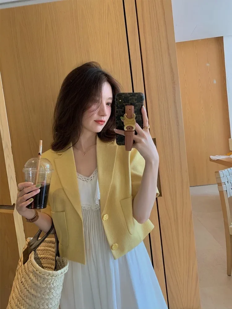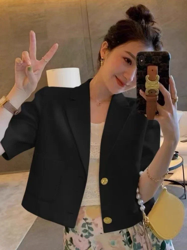 ♡Visualização rápidaPreto recortado blazers mulher tendência 2024 novo all-match gola entalhada colheita jaqueta feminina coreano chique único botão terno casaco15.21 EUREUR 253.45Quente★★★★★★4.9
