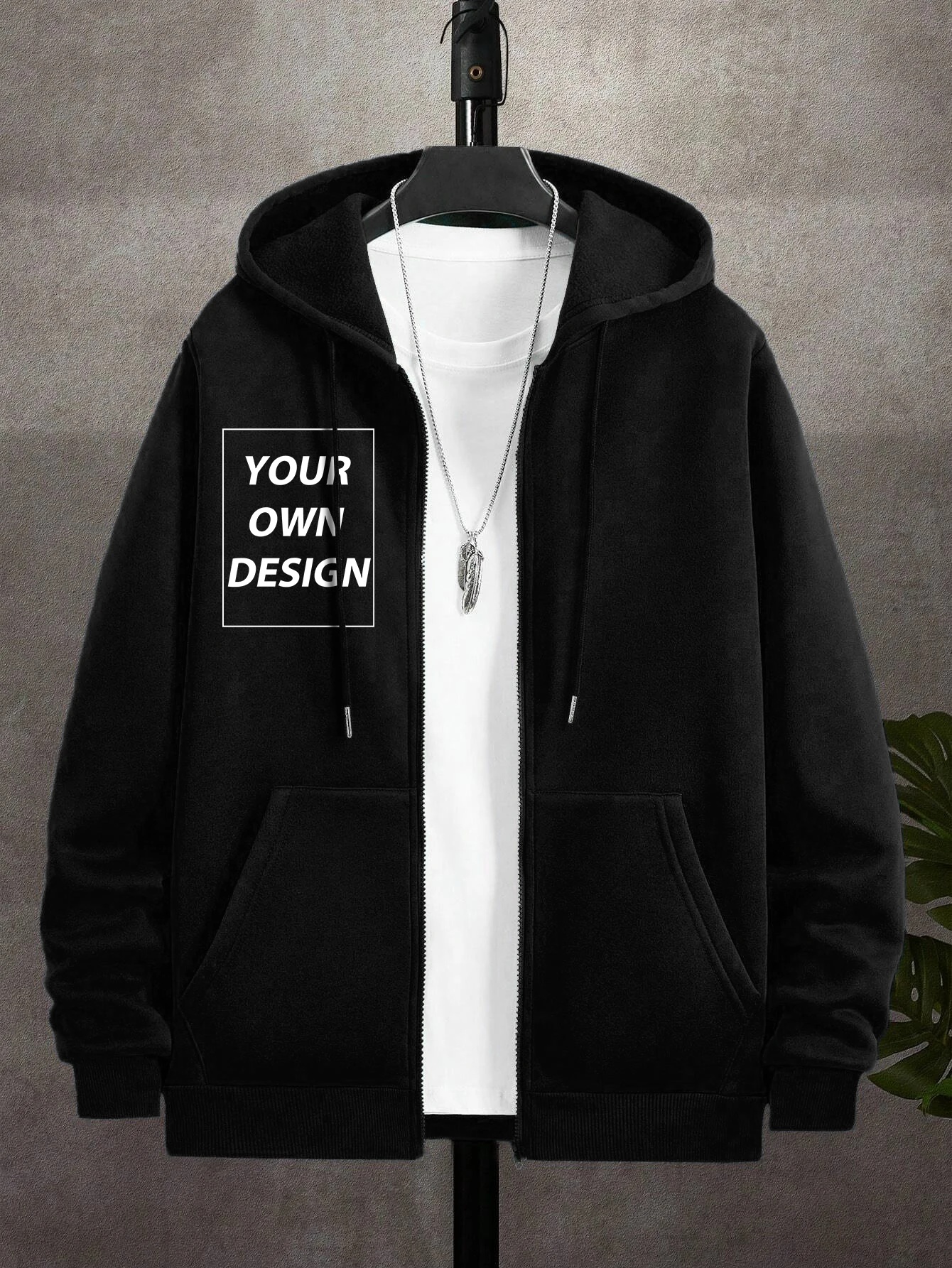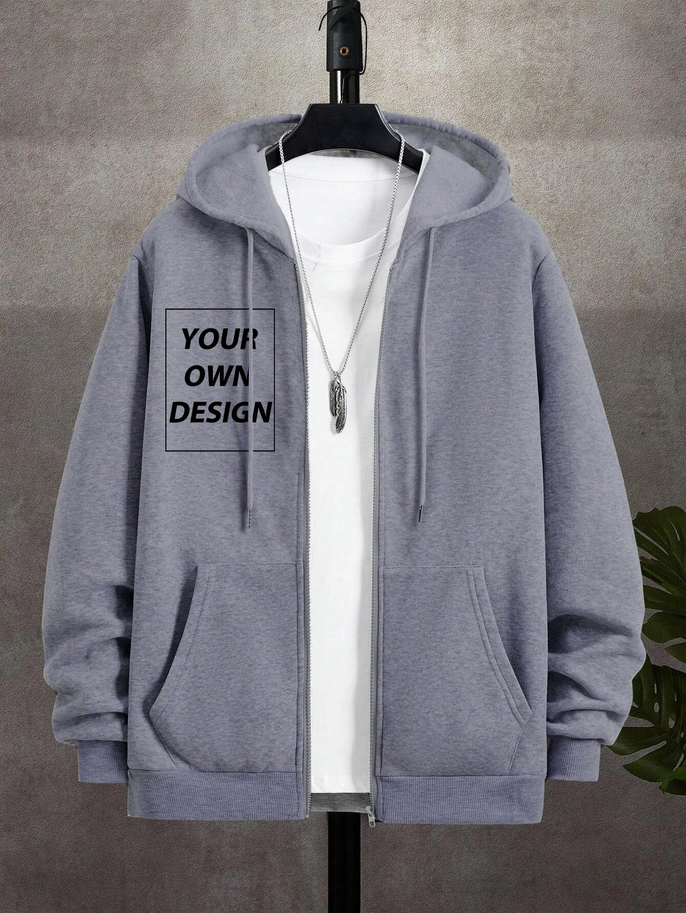 Moletom com Zíper de Fleece para Homens M-3XL, Personalização de Logotipo e Gráficos, Roupas Casuais de Esporte, Tops Soltos - TopDealBox