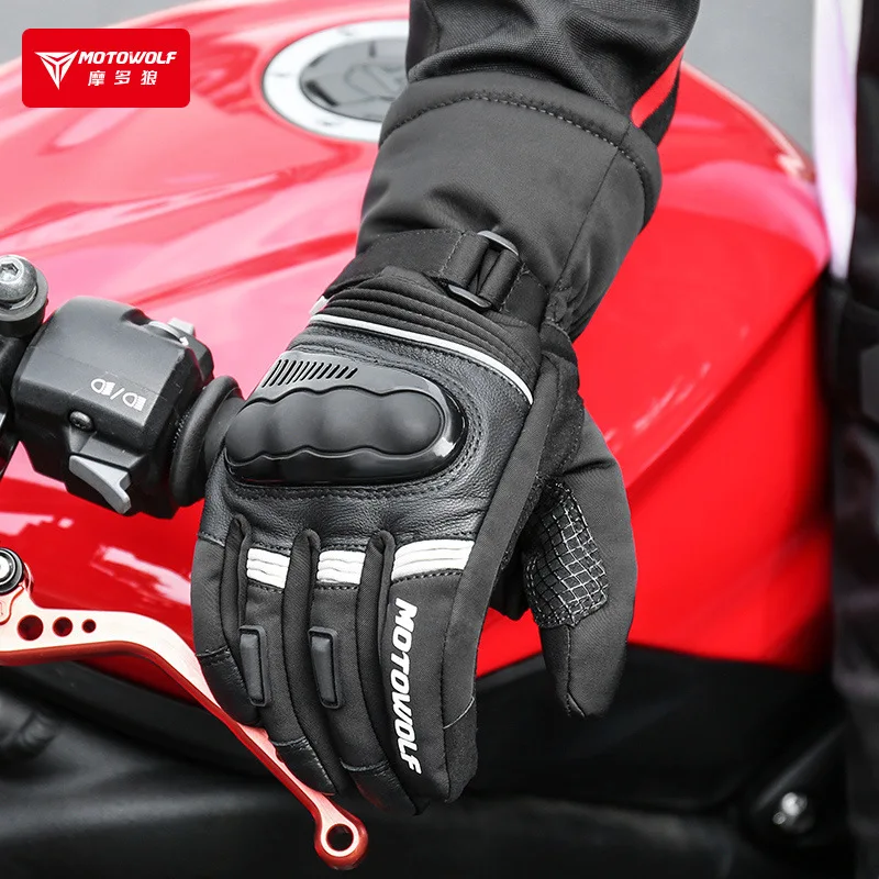 Motowolf inverno motocicleta luvas térmicas dos homens à prova dwaterproof água luvas de motociclista velo à prova vento motocross luvas de couro moto equipamentos - TopDealBox