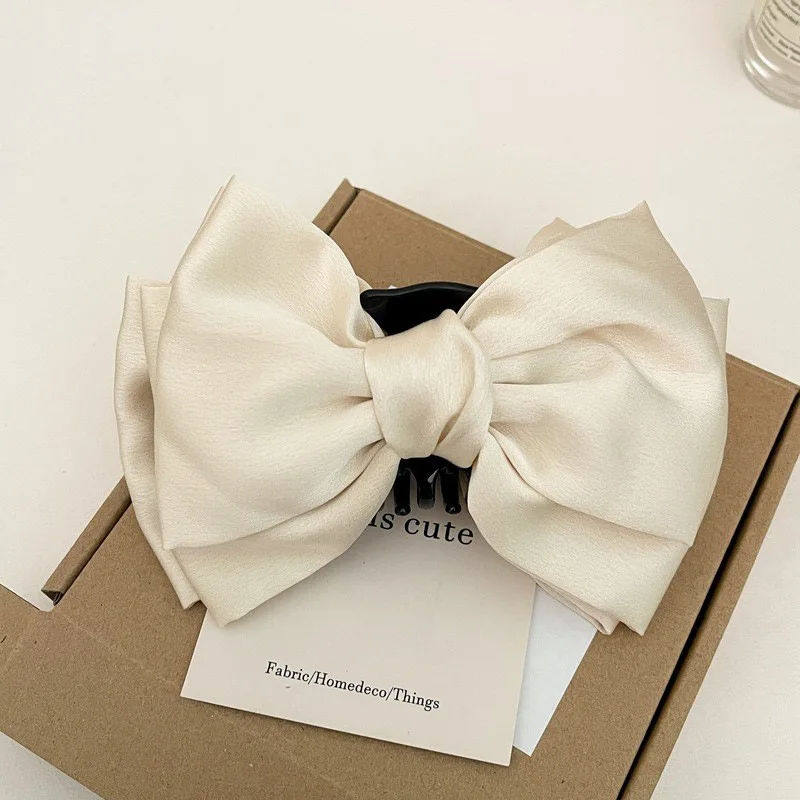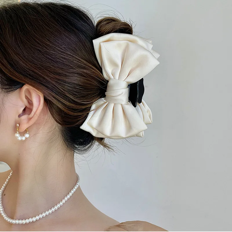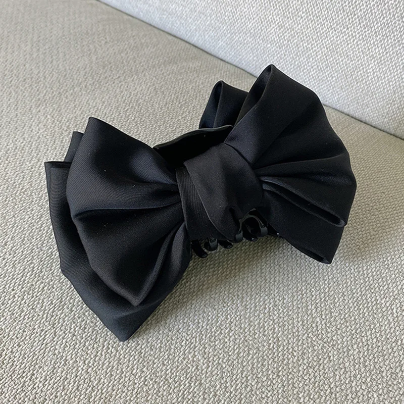Mulheres elegantes arco garra de cabelo clipes dupla face grande cetim tubarão garra de cabelo sólido bowknot grampos de cabelo presilhas acessórios para o cabelo - TopDealBox