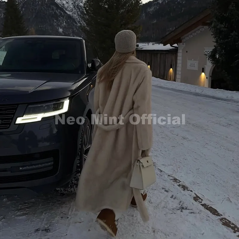 Neo mint com cinto falso casaco de pele de vison feminino 2025 inverno bege gradiente jaqueta de pele peluda marca de luxo com capuz quente outerwear casaco - TopDealBox