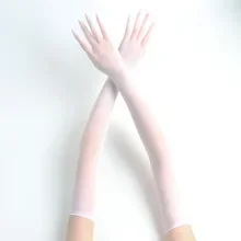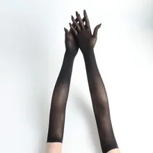 Nova cor sólida longo tubo meias luvas ultra-fino cinco dedos sem costura anti gancho seda longa transparente etiqueta luvas suns - TopDealBox