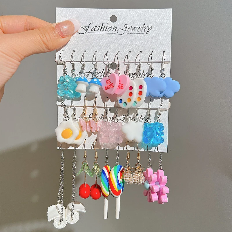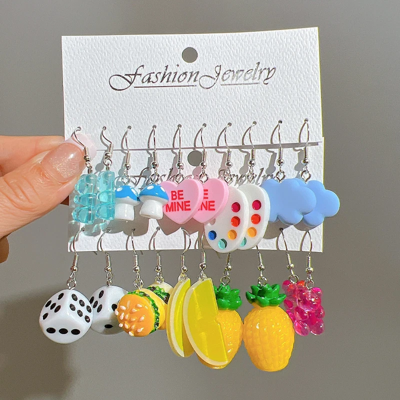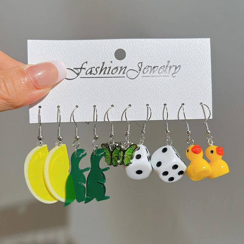 Novo conjunto de brincos doces dos desenhos animados bonito animal pato urso colorido frutas balançar brincos para mulheres meninas na moda dopamina jóias presente - TopDealBox