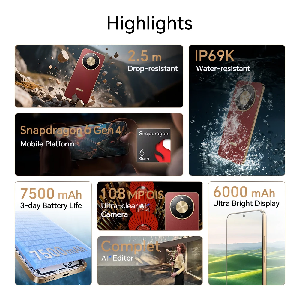 Novo HONOR Magic8 Lite Versão EU 5G Smartphone Android 2026 com AMOLED, Snapdragon 6 Gen 4, 7500mAh e Câmera AI de 108MP com OIS - TopDealBox