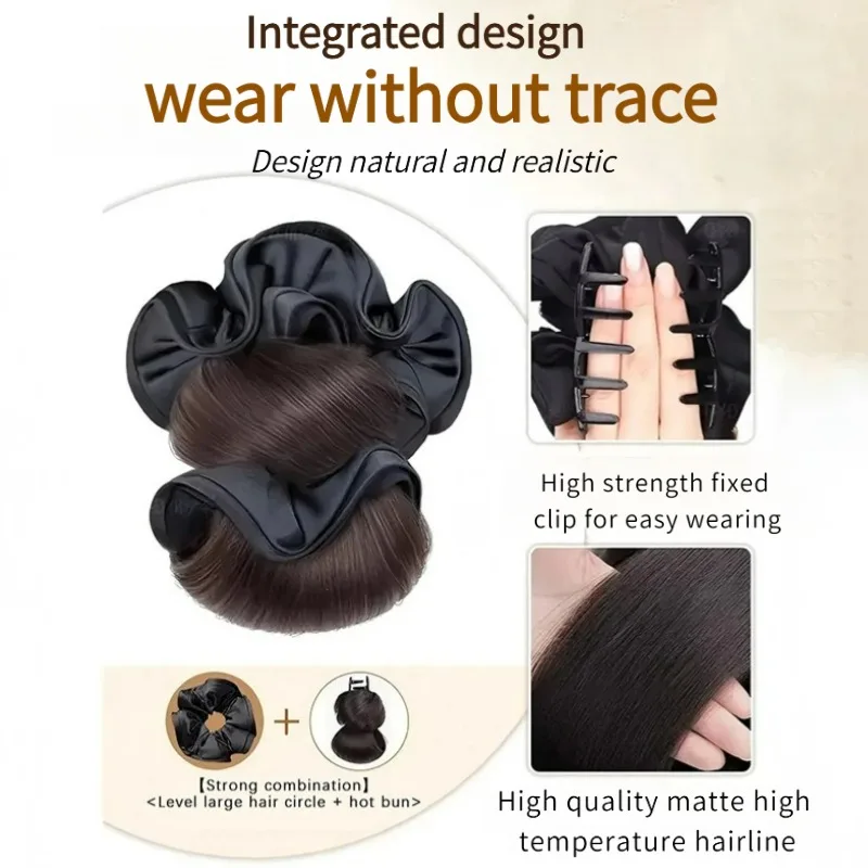 Novo Laço de Cabelo Sintético de Cetim com Clipe para Coque, Extensões de Cabelo em Rabo de Cavalo, Coque Cacheado e Fofo para Uso Diário Feminino - TopDealBox
