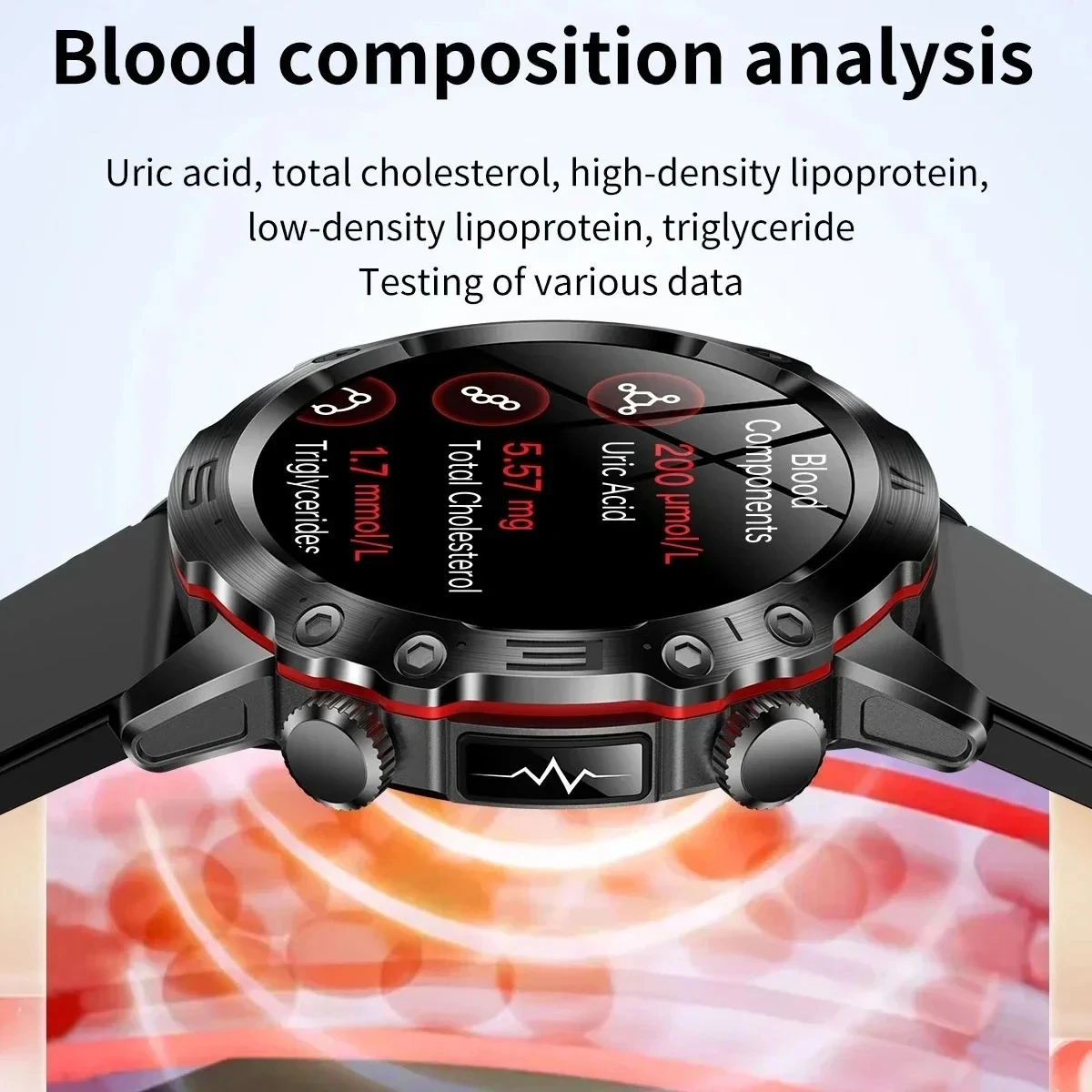 Início > Eletrônicos > Eletrônicos inteligentes Novo saudável lipídios no sangue ácido úrico açúcar no sangue relógio inteligente masculino ecg + ppg rastreador de fitness relógio bluetooth chamada esportes smartwatches Informações de envio