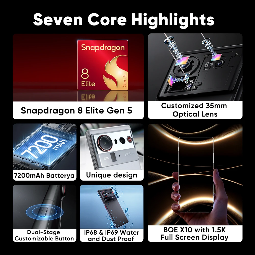 Novo Smartphone ZTE nubia Z80 Ultra 5G Versão Global Snapdragon 8 Elite Gen 5 7200mAh Tela Oled de 6.85'' 144Hz Carregamento Rápido de 90W - TopDealBox