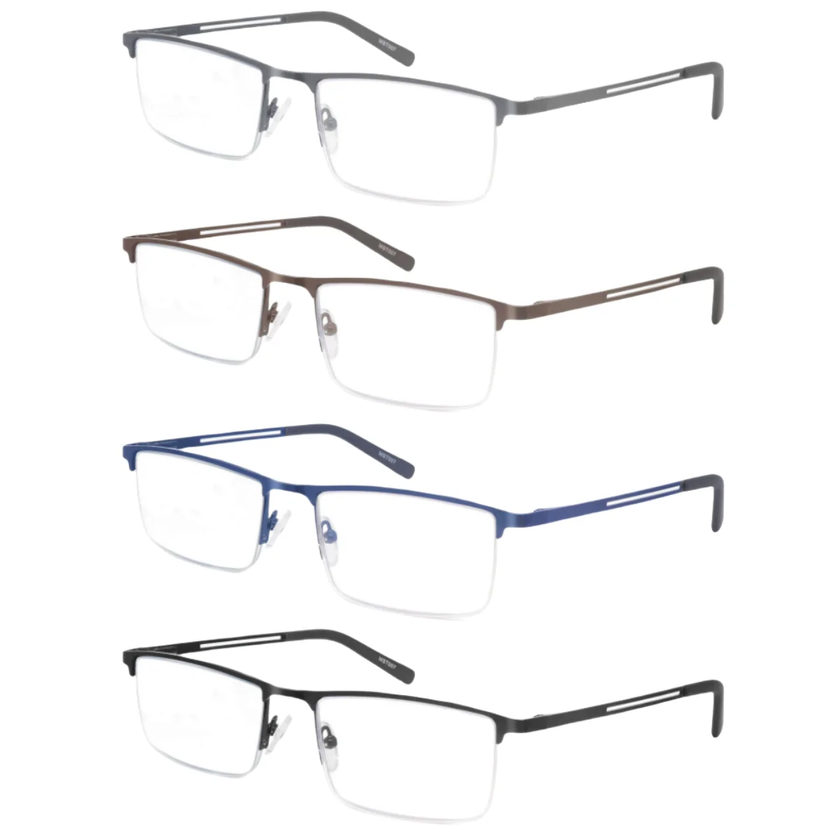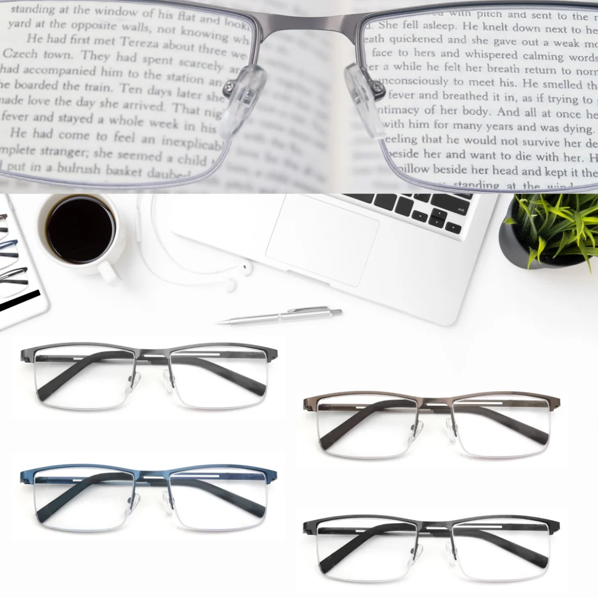 Óculos de leitura com luz azul, leitores de computador masculinos, armação de metal antirreflexo com dobradiça de mola, proteção uv400, alívio de tensão ocular - TopDealBox