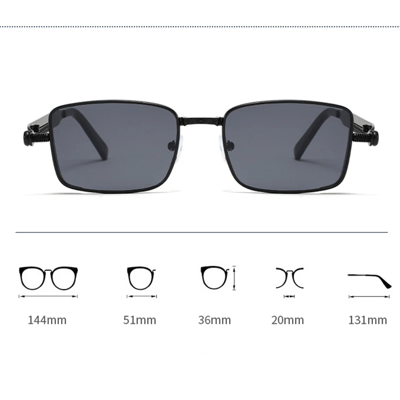 Início > Acessórios de vestuário > Colarinhos Óculos de Sol Quadrados Masculinos de Alta Qualidade e Estilosos para Dirigir, Óculos de Sol Punk de Metal Resistente com Proteção UV 8477 Informações de envio