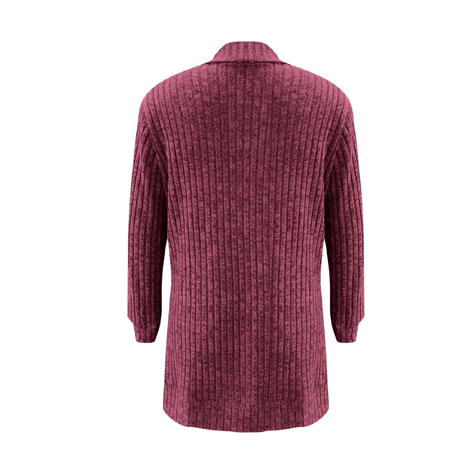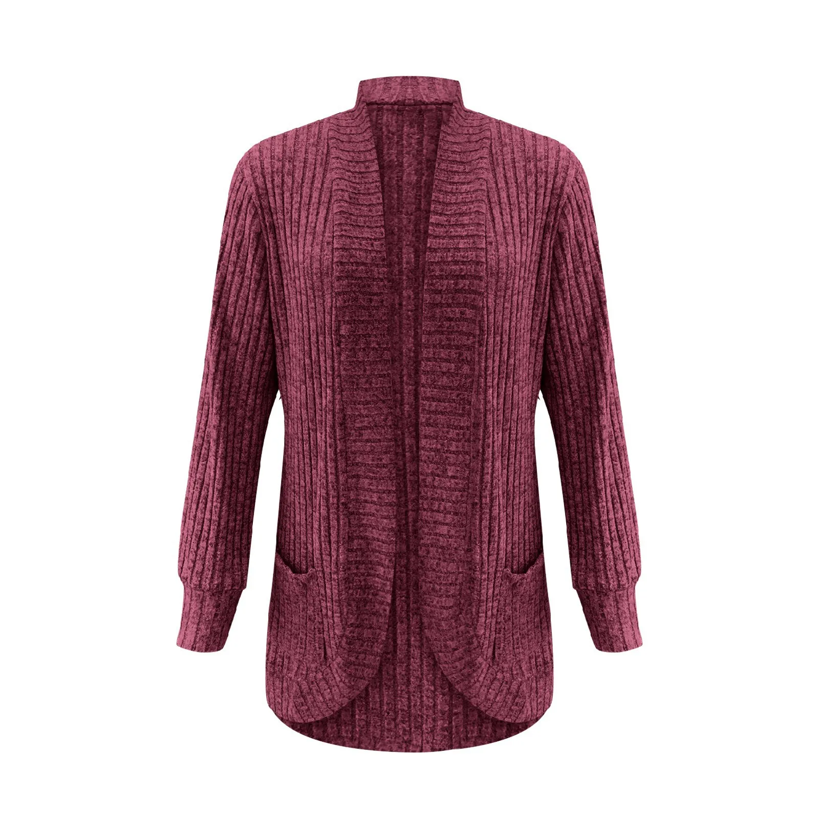 Outono feminino malha cardigan camisola cor sólida manga longa camisola cardigans com bolsos feminino vintage malhas casaco - TopDealBox