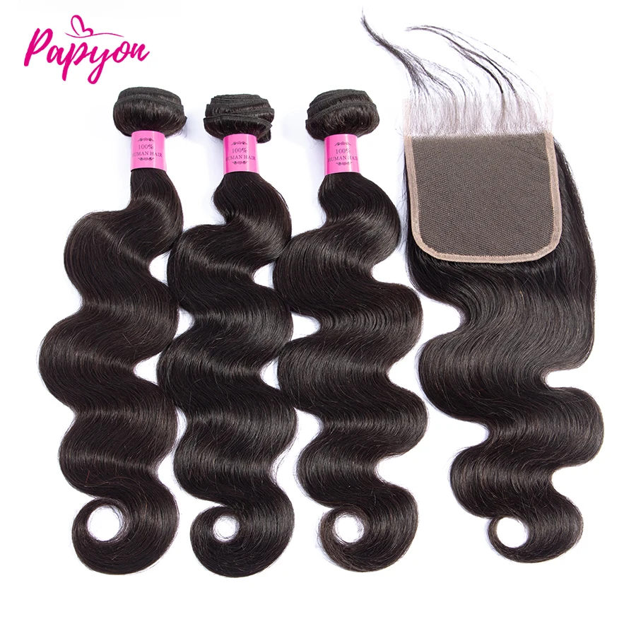 Pacotes de cabelo humano com fechamento 5x5 pacotes de onda do corpo brasileiro com fechamento 4x4 extensões tecer cabelo humano 3/4 pacotes remy - TopDealBox