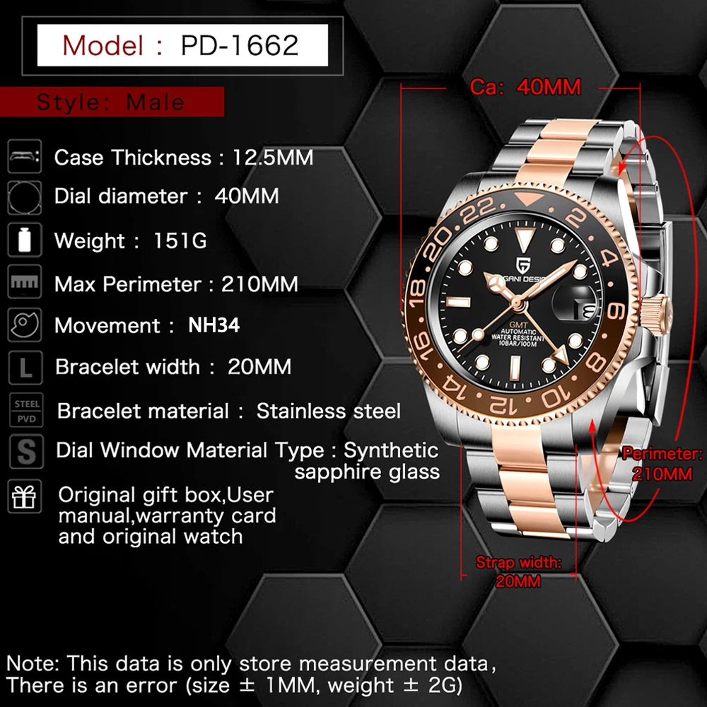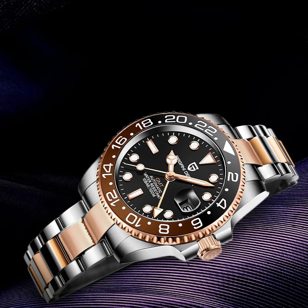 Pagani design 40mm nh34 relógio mecânico totalmente automático masculino luxo vidro safira 40mm cerâmica gmt relógio 100m à prova dwaterproof água - TopDealBox
