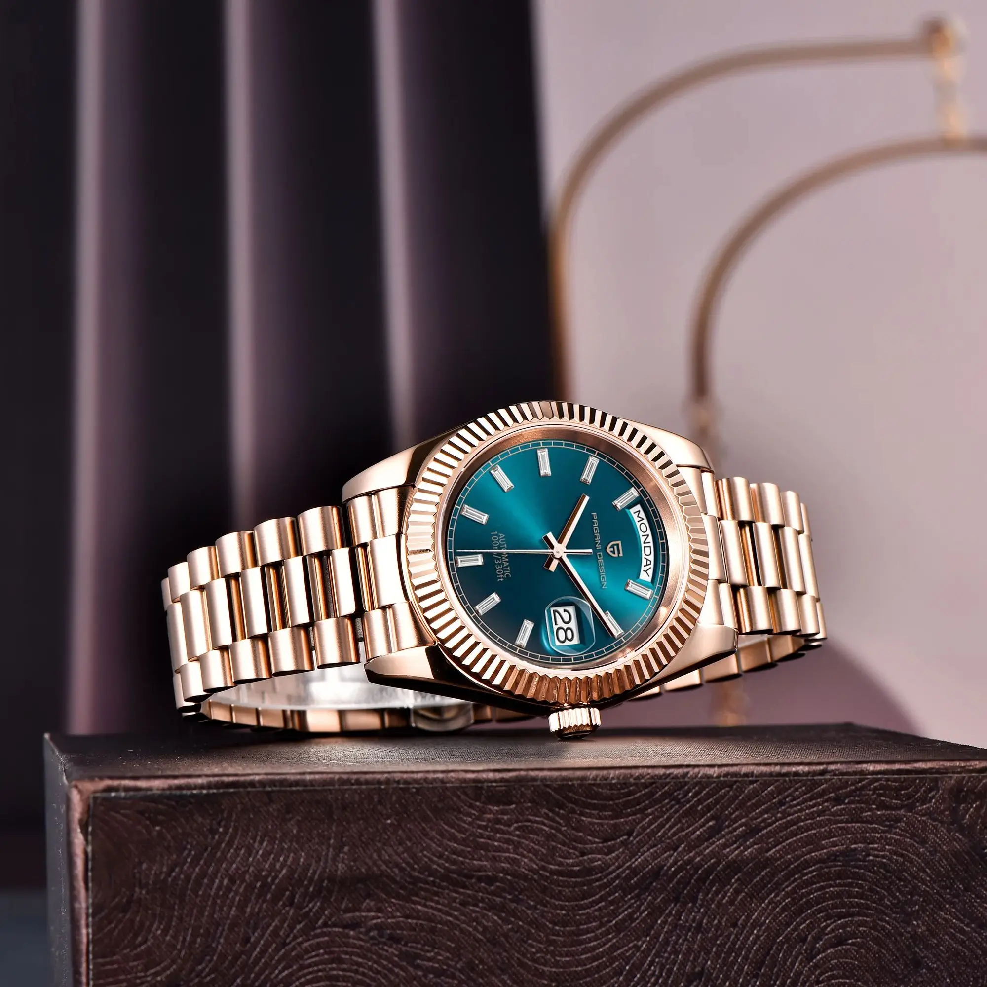 Pagani design novo dd36 ouro rosa luxo relógio mecânico automático para homem st16 100m à prova dwaterproof água ar safira vidro relógio de pulso masculino - TopDealBox